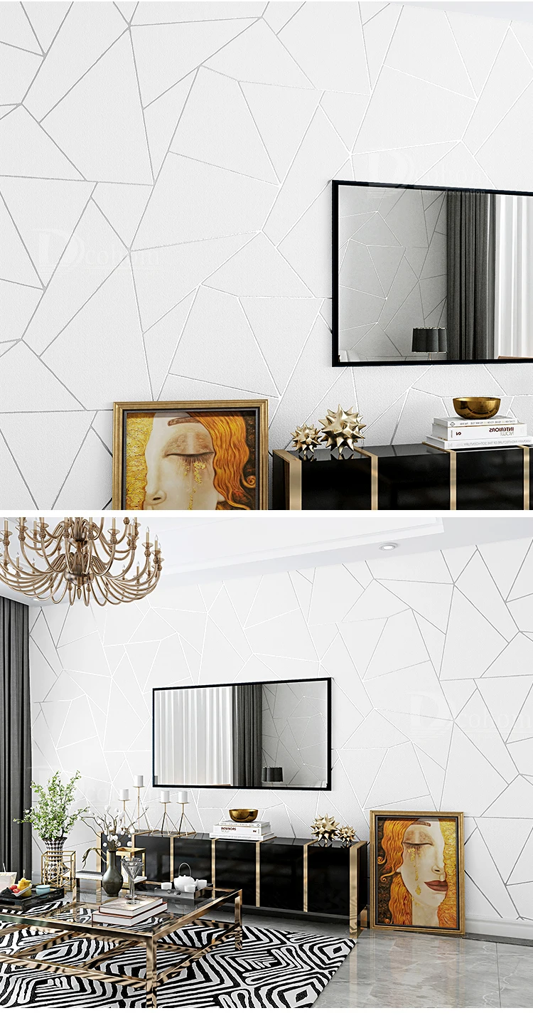 สีเทาสีขาวสีฟ้าเรขาคณิตวอลล์เปเปอร์สําหรับห้องนั่งเล่นห้องนอนการออกแบบที่ทันสมัย 3D ลายนูนลายสามเหลี่ยมรูปแบบกระดาษม้วน