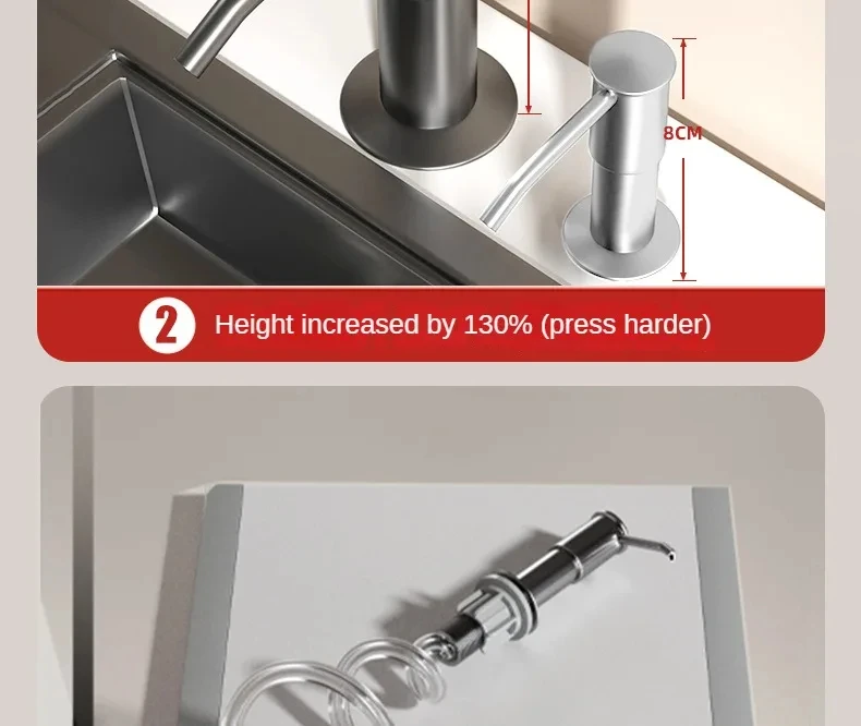 เครื่องจ่ายสบู่เหลวในครัวเครื่องจ่ายสบู่เหลวแบบอ่างล้างจานปั๊มครัวเครื่องมือทําความสะอาดมือห้องครัวขวดจ่ายของเหลวความดัน
