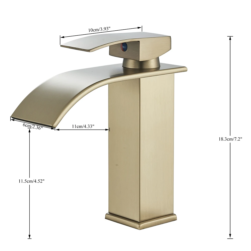 ก๊อกน้ำอ่างล้างหน้าสีทองขัดเงาก๊อกน้ำซิงค์ห้องน้ำน้ำตกที่สง่างามก๊อกน้ำแบบเดี่ยวเจาะรูบนดาดฟ้าก๊อกผสมทองเหลือง