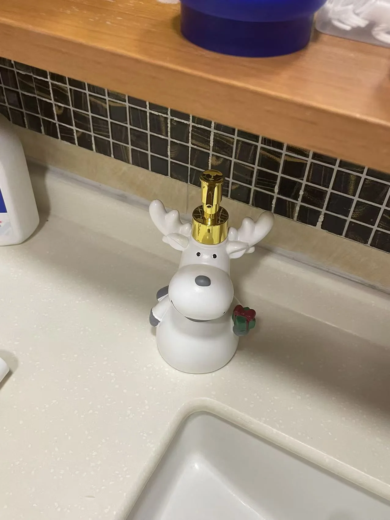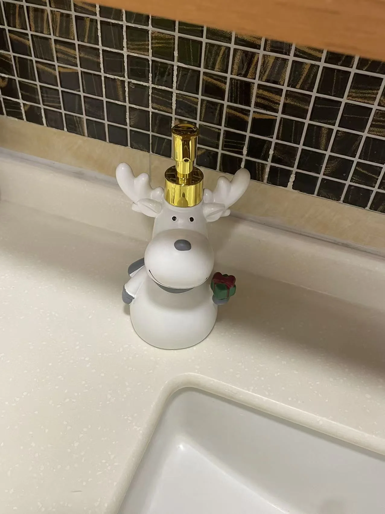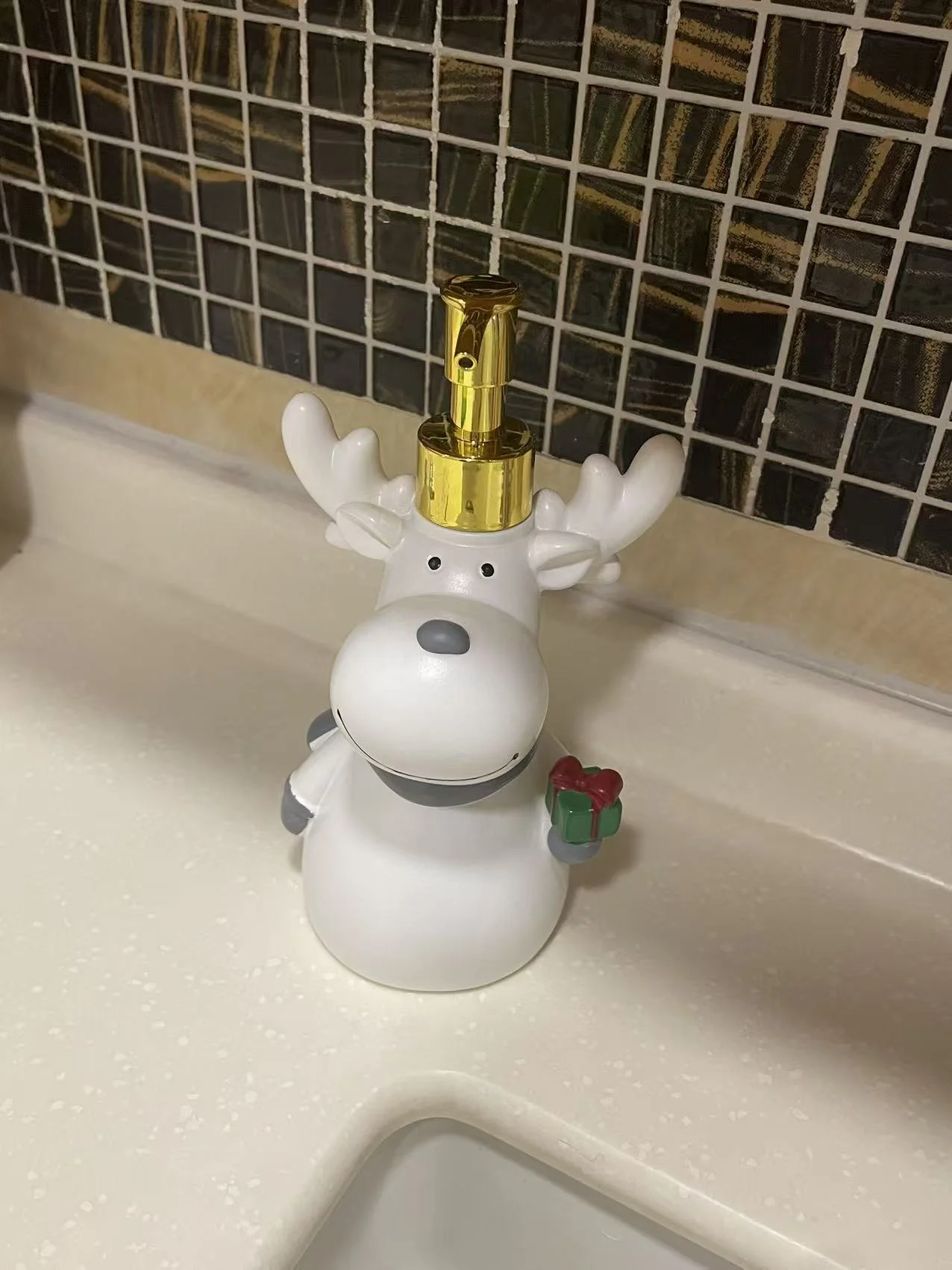เครื่องจ่ายสบู่เหลวรูปตุ๊กตาหิมะ ของตกแต่งคริสต์มาส ภาชนะรีฟิลได้สำหรับวางบนเคาน์เตอร์ห้องน้ำและห้องครัว จาก 1 รีวิว