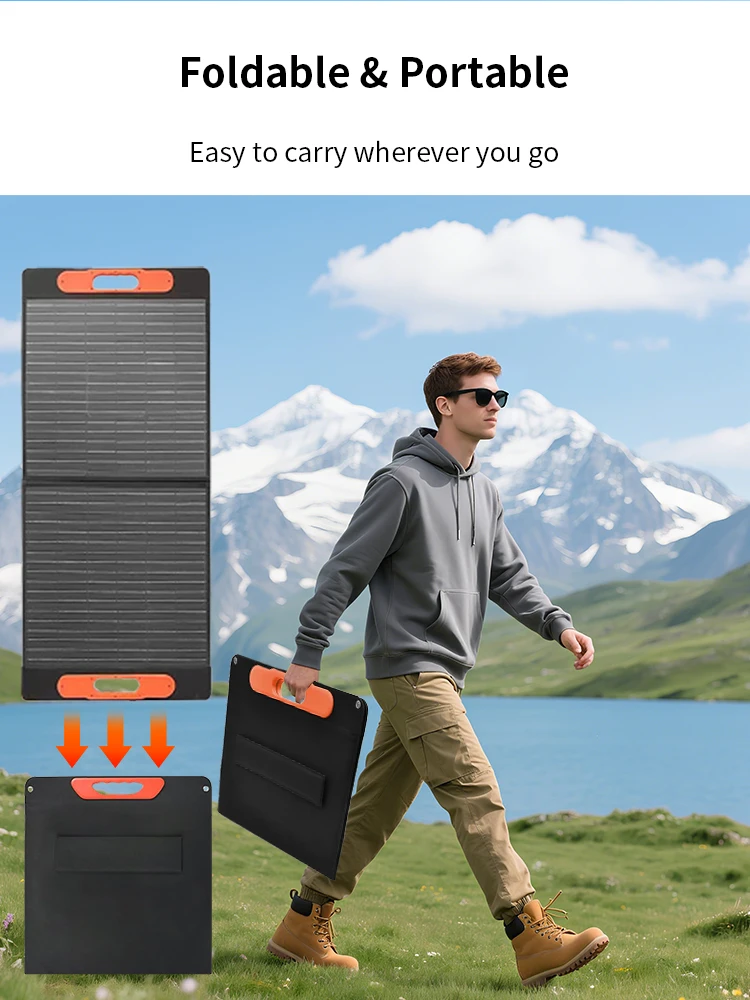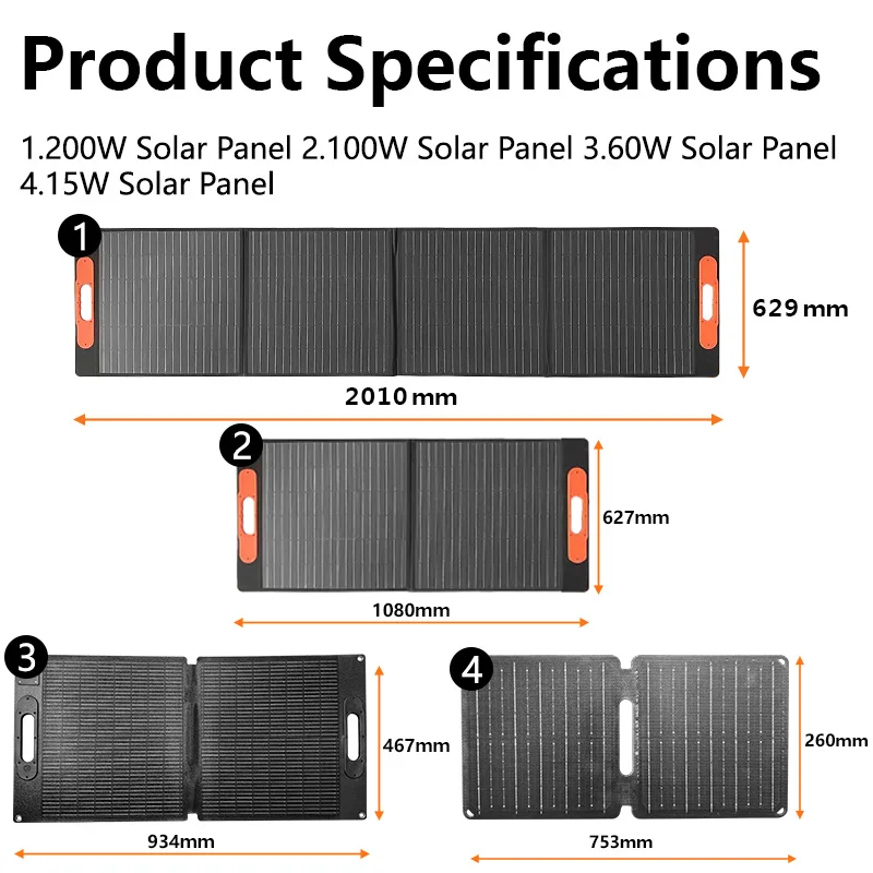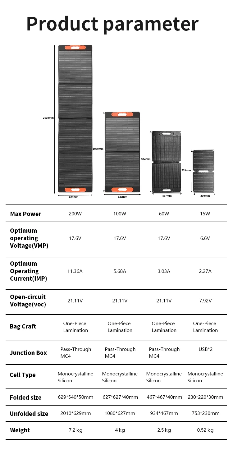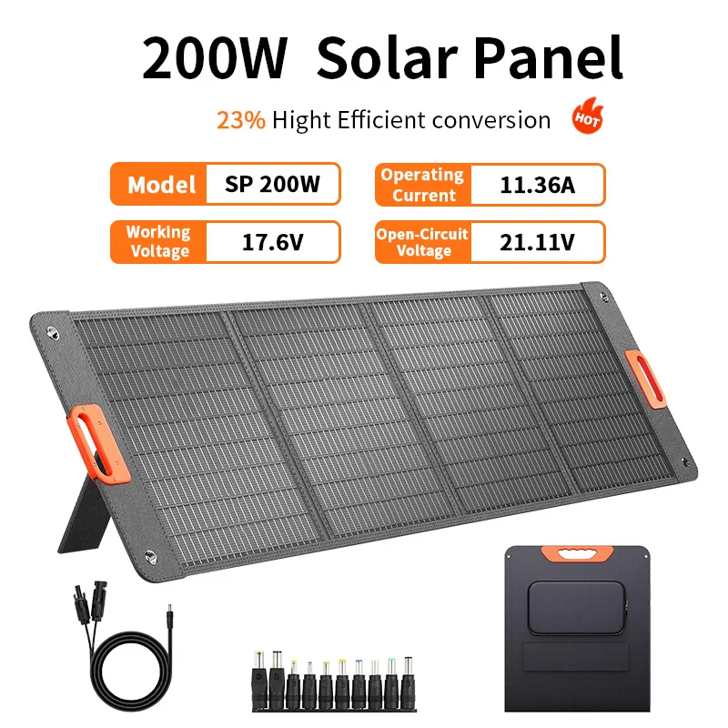แผงโซลาร์เซลล์ 200 วัตต์, กันน้ำระดับ IP68 แบบพับได้ แผงโซลาร์เซลล์พกพา 100 วัตต์สำรองไฟ, เครื่องชาร์จพลังงานแสงอาทิตย์สำหรับสถานีไฟฟ้า รถบ้าน และการตั้งแคมป์