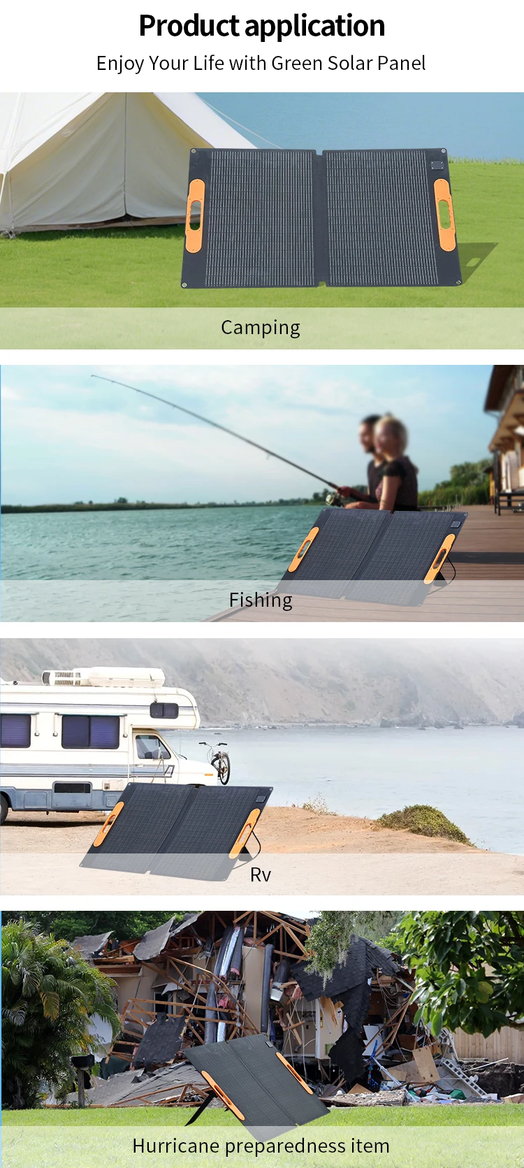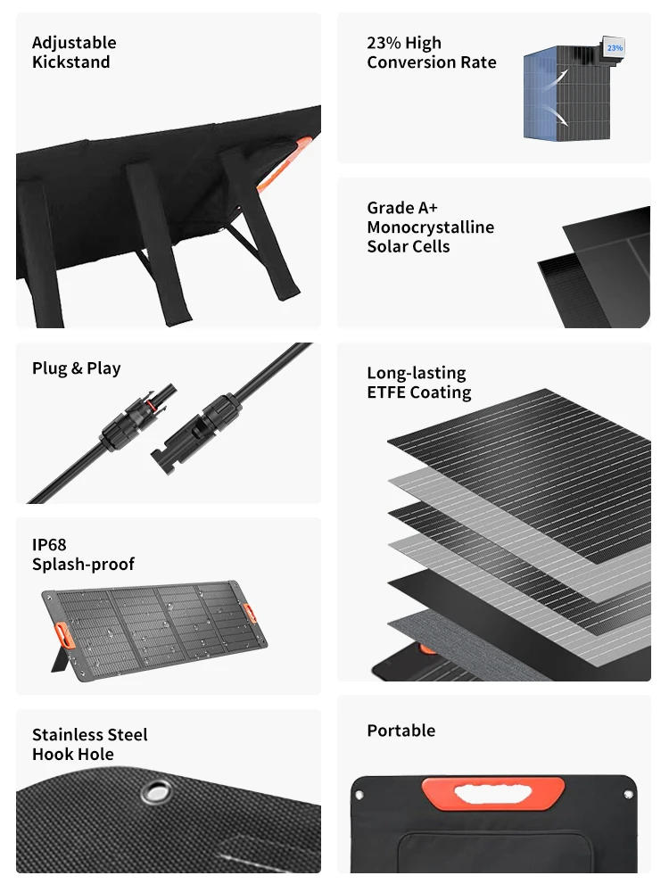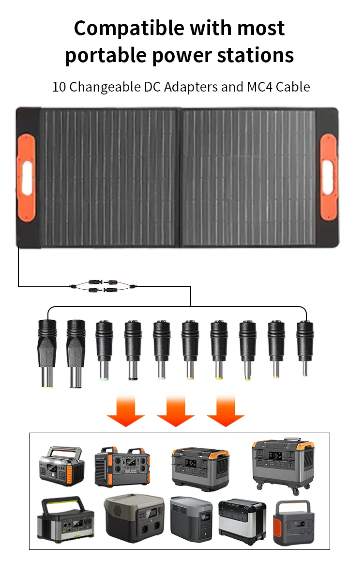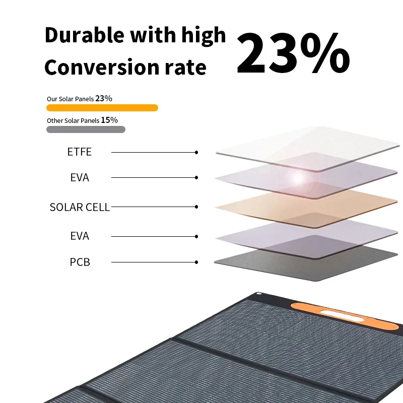 แผงโซลาร์เซลล์ 200 วัตต์, กันน้ำระดับ IP68 แบบพับได้ แผงโซลาร์เซลล์พกพา 100 วัตต์สำรองไฟ, เครื่องชาร์จพลังงานแสงอาทิตย์สำหรับสถานีไฟฟ้า รถบ้าน และการตั้งแคมป์
