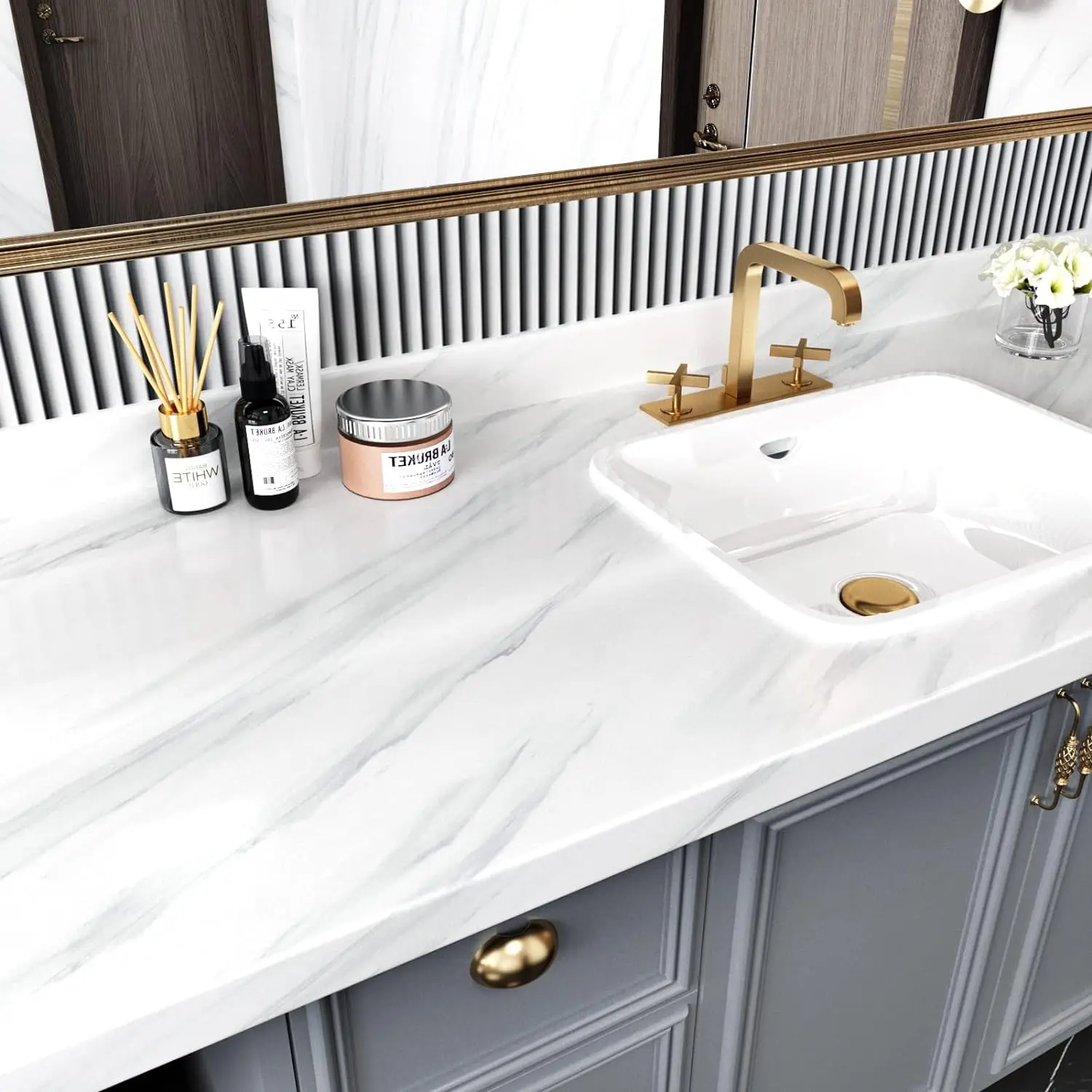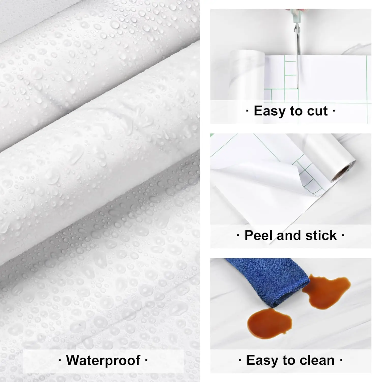 กระดาษติดผนังลายหินอ่อนแบบมันเงาสำหรับเคาน์เตอร์ วอลเปเปอร์กันน้ำ แบบลอกและติด กระดาษติดเคาน์เตอร์แบบมีกาวในตัวสำหรับห้องครัว