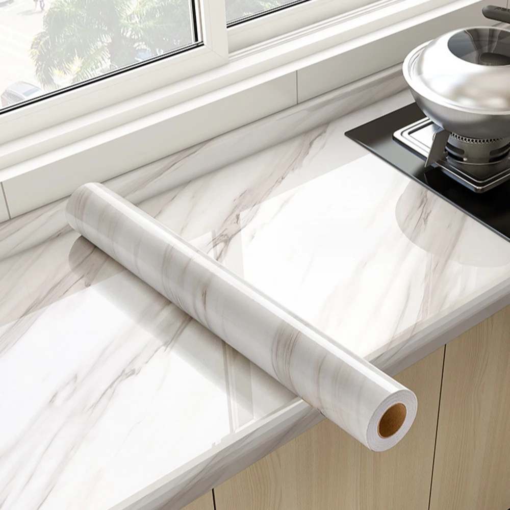 วอลเปเปอร์ลายหินอ่อนแบบมีกาวในตัว กันน้ำ กันน้ำมัน สติ๊กเกอร์สำหรับห้องครัว ทนความร้อน ฟิล์มตกแต่งบ้าน