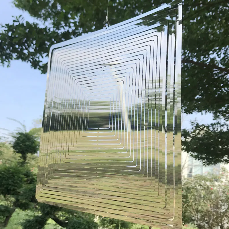 Heart Square Drop รูปร่างสแตนเลส3D หมุน Spinner Chime โลหะ Decor บ้านสวนตกแต่งกลางแจ้งในร่มห้อง