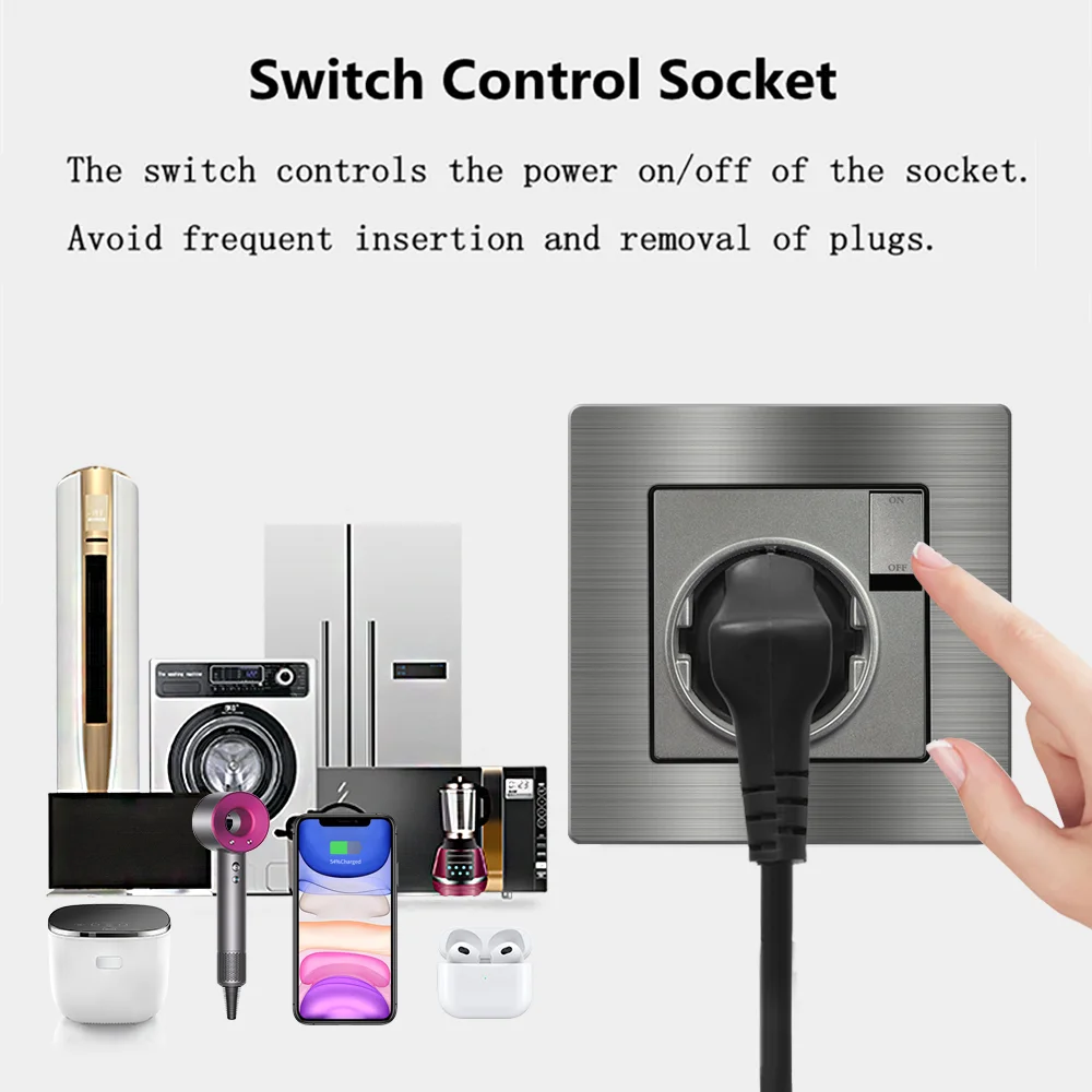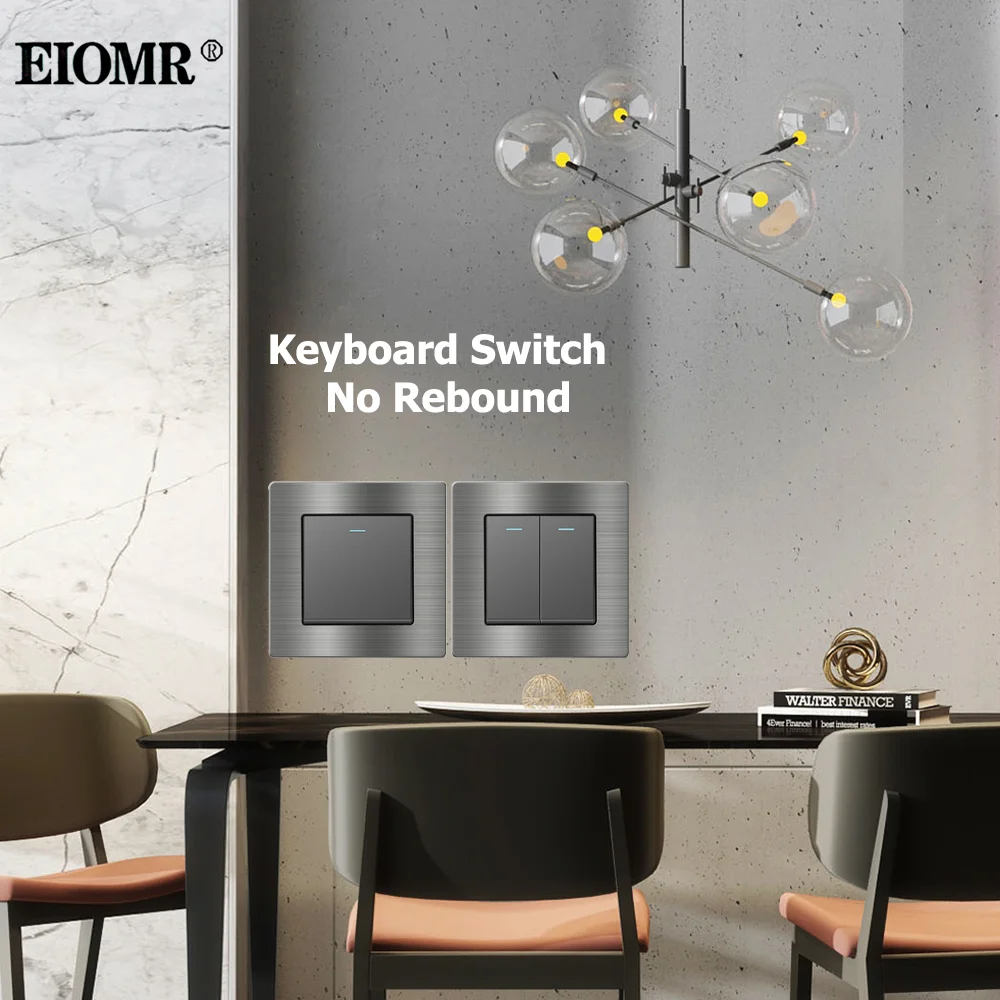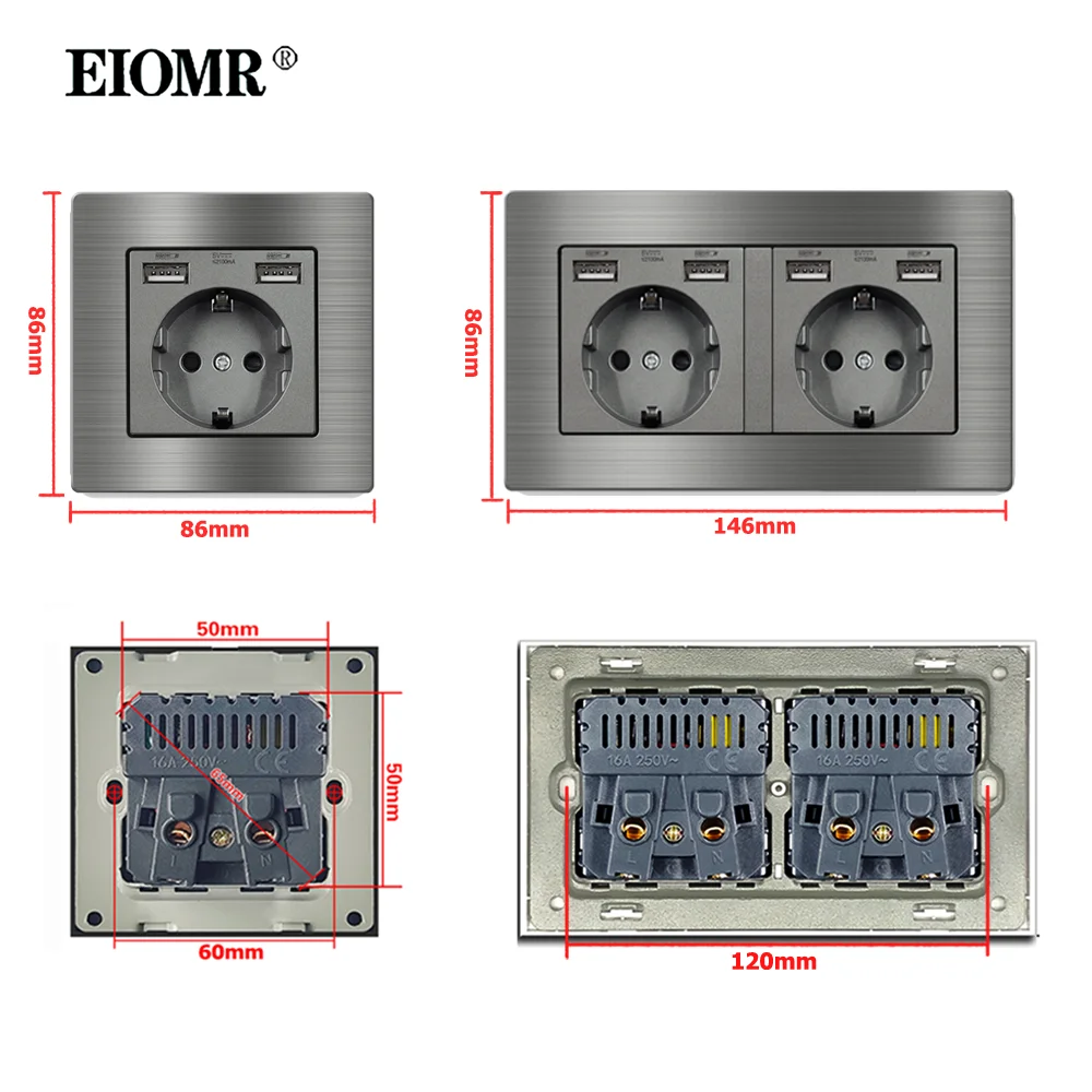 EIOMR F6 Series สีเทาแผงอลูมิเนียมสวิทช์ไฟ EU ไฟฟ้า 86 มม.ซ็อกเก็ตเดี่ยว 146 มม.Outlet USB Wall ซ็อกเก็ตทีวี