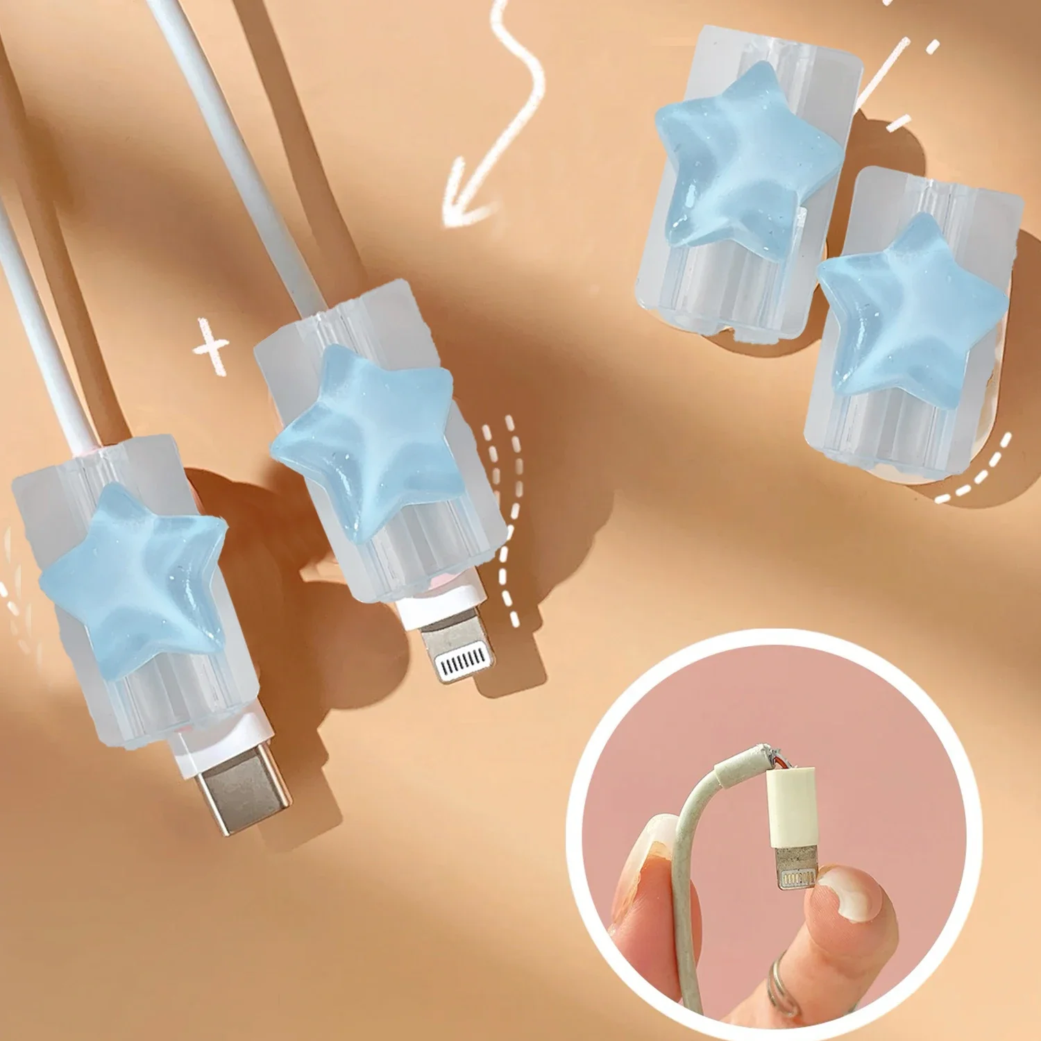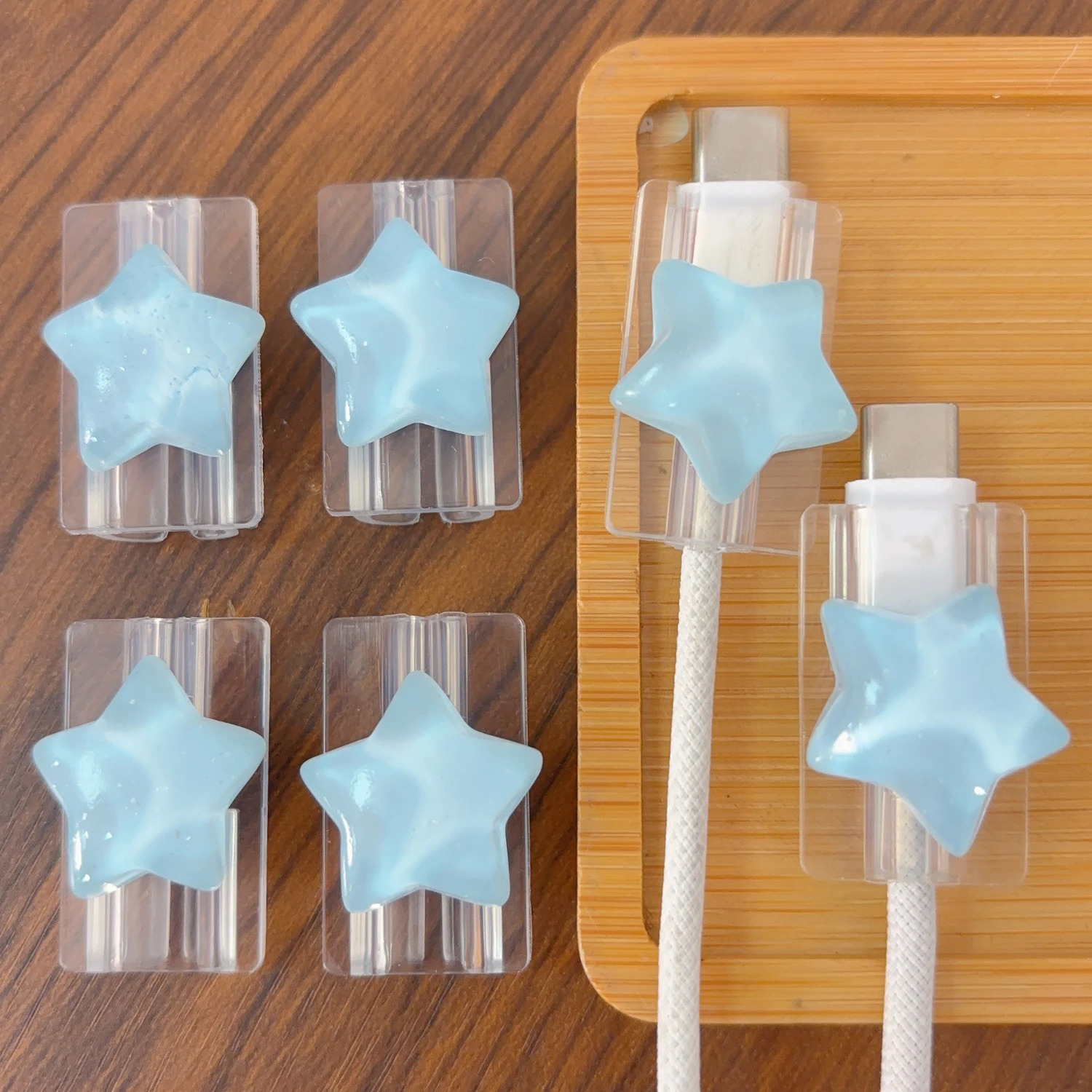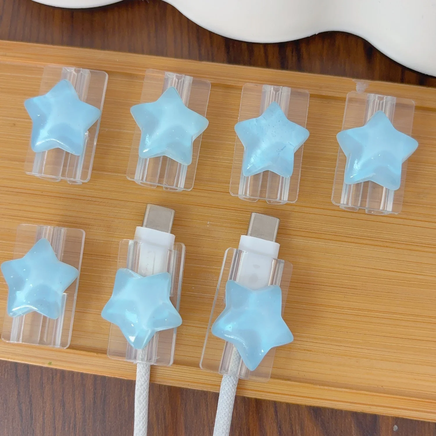 1-10Pcs ฤดูร้อนแฟชั่นน่ารัก 3D ดาวสายปลอกป้องกันป้องกันสายไฟสำหรับไอโฟน 18W 20W ประเภท C ข้อมูล