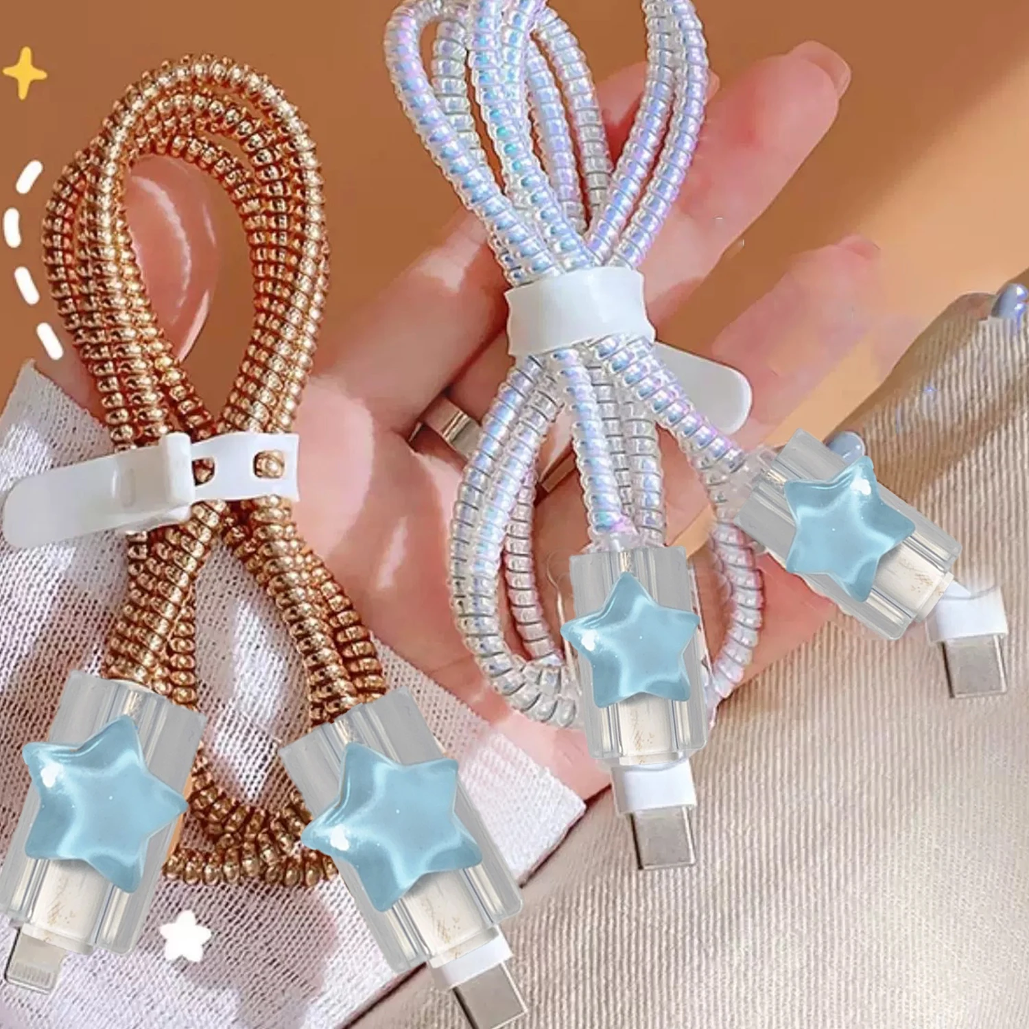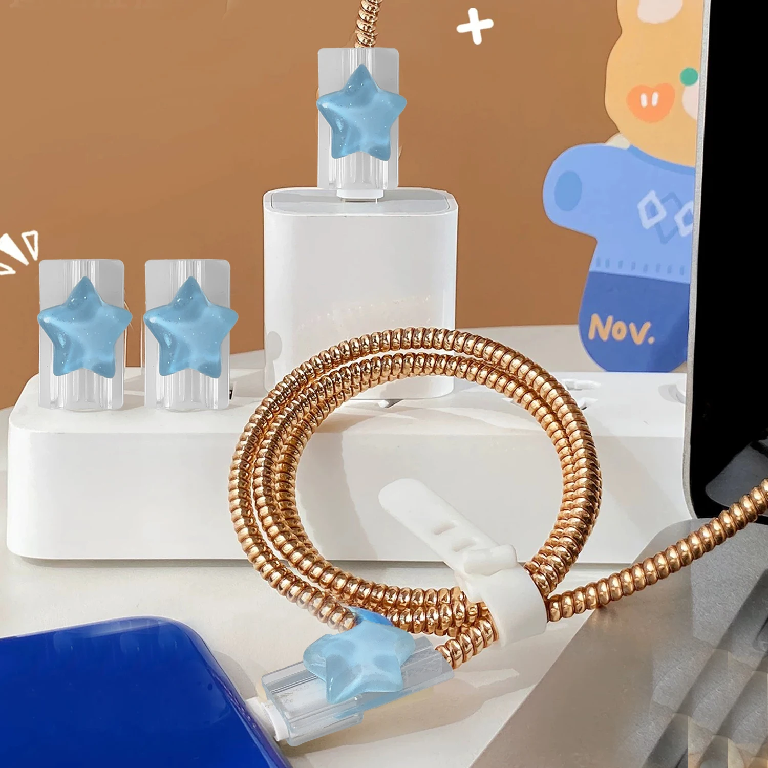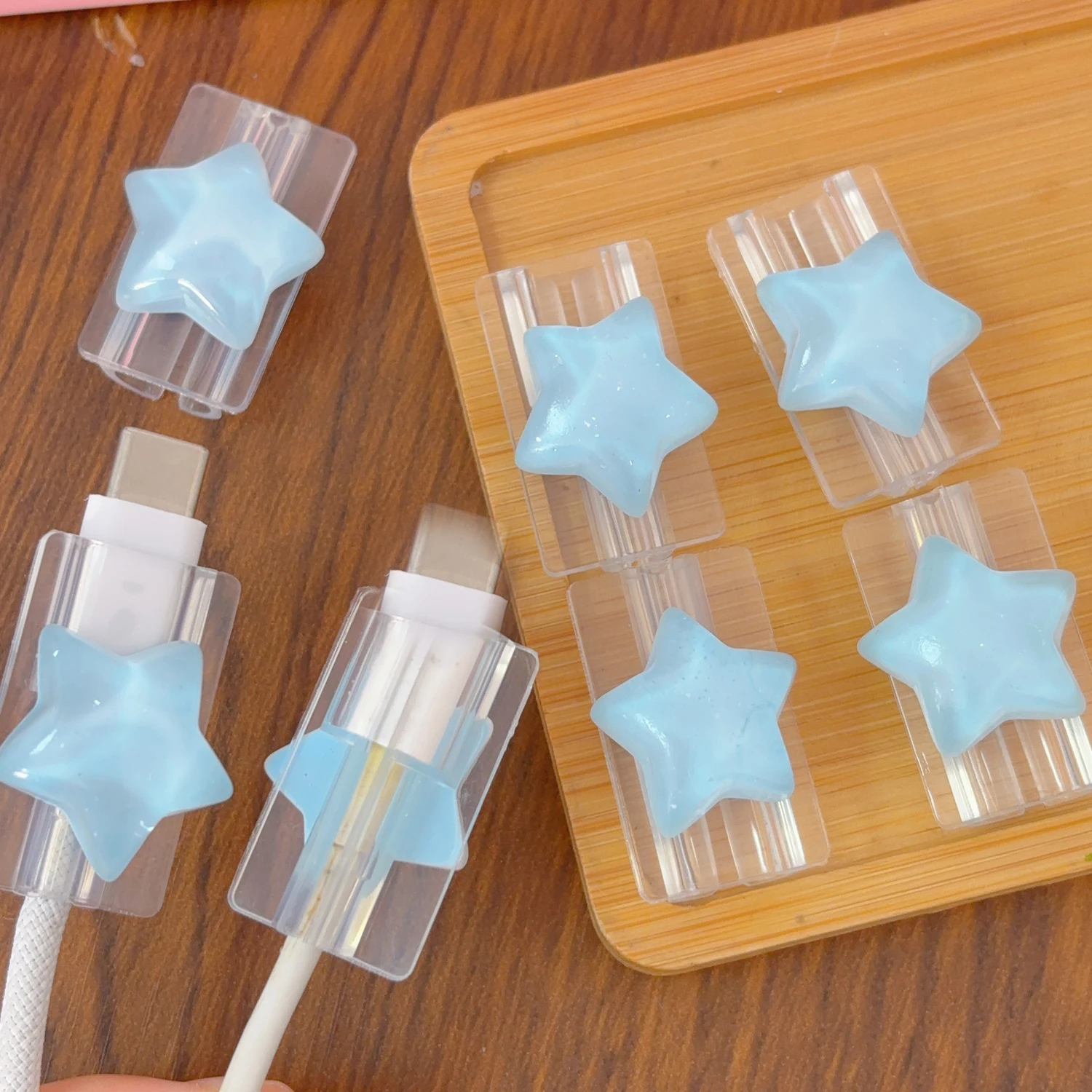 1-10Pcs ฤดูร้อนแฟชั่นน่ารัก 3D ดาวสายปลอกป้องกันป้องกันสายไฟสำหรับไอโฟน 18W 20W ประเภท C ข้อมูล