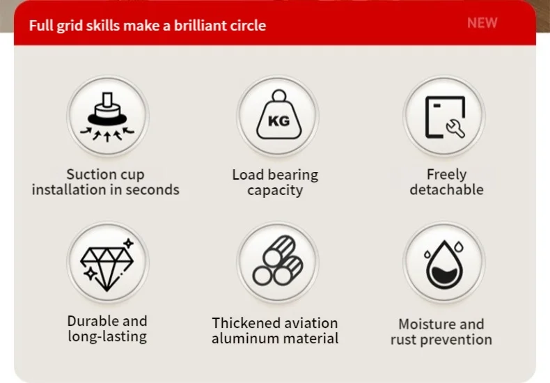 3.ความสามารถในการรับน้ำหนักของสินค้า: ความสามารถในการรับน้ำหนักปกติและมาตรฐานทั่วไปอยู่ที่ 1 ถึง 3 กิโลกรัมอย่างไรก็ตาม สำหรับการใช้งานผนังที่แตกต่างกัน ความสามารถในการรับน้ำหนักของผลิตภัณฑ์จะแตกต่างกันไปดังนั้นจึงจำเป็นต้องวัดความสามารถในการรับน้ำหนักตามผนังจริงเราหวังว่าผู้ซื้อจะเข้าใจขอบคุณ
