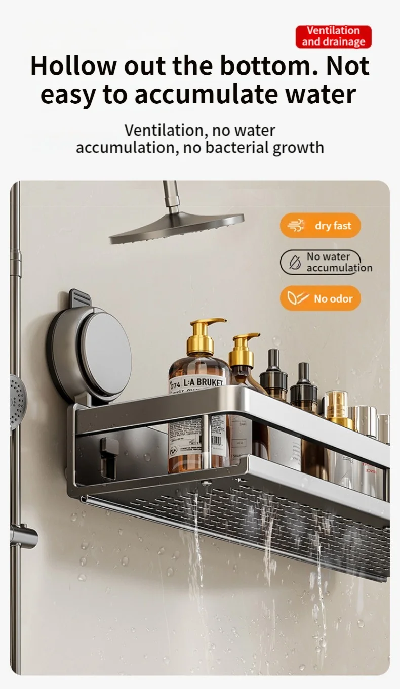 ชั้นวางของในห้องน้ำแบบติดผนัง ไม่ต้องเจาะ ติดตั้งด้วยถ้วยดูด ชั้นวางของในห้องน้ำ ชั้นวางของในห้องน้ำ ชั้นวางของอลูมิเนียมสำหรับห้องน้ำ ชั้นวางของในห้องน้ำแบบแขวน ชั้นวางของในห้องน้ำแบบแขวนผนัง