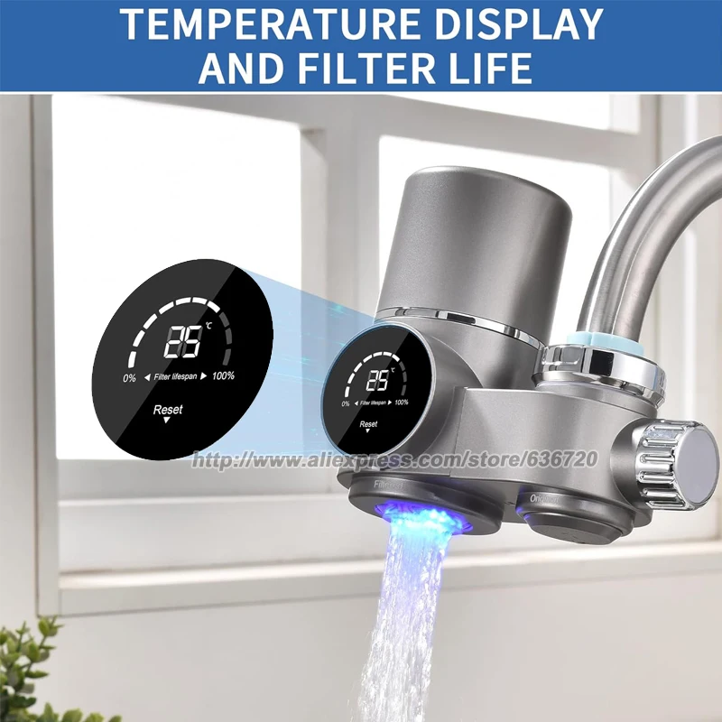 จอแสดงผล LED ในตัวจะแจ้งเกี่ยวกับอุณหภูมิของน้ําและอายุการใช้งานของตัวกรอง เพื่อเพิ่มการรับรู้ของผู้ใช้เกี่ยวกับตัวกรองน้ําสําหรับสถานะก๊อกน้ําอ่างล้างจานฟังก์ชันนี้รับประกันประสิทธิภาพของการบําบัดน้ํา อํานวยความสะดวกในการบํารุงรักษาและการจัดการ และมอบประสบการณ์ผู้ใช้ที่ดีที่สุดโหมดน้ําคู่ช่วยให้สามารถสลับระหว่างน้ําดิบและน้ํากรองได้อย่างรวดเร็วเพื่อตอบสนองความต้องการน้ําที่แตกต่างกัน