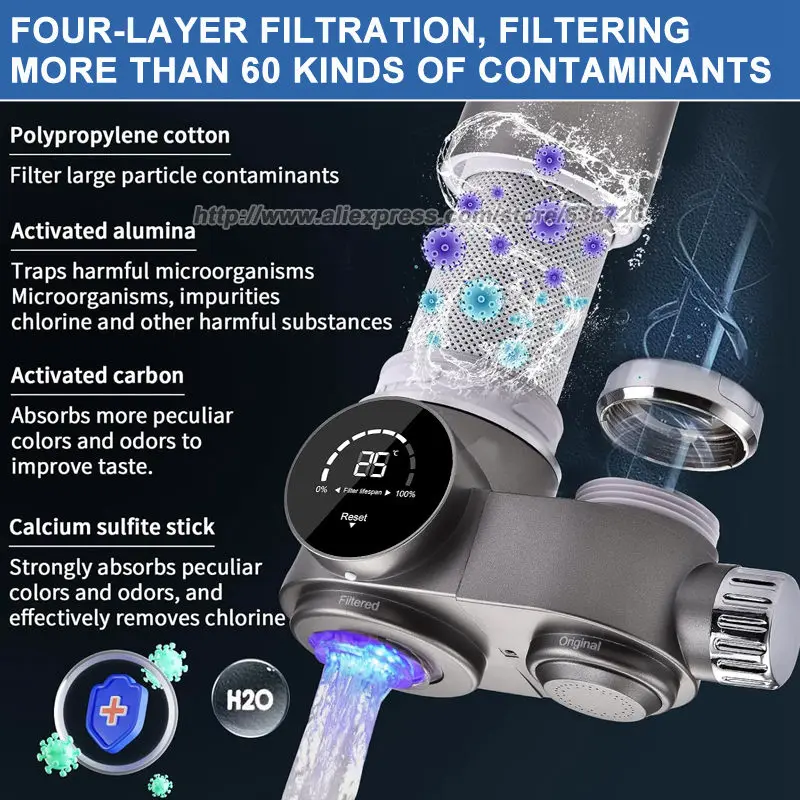 ติดตั้งแสงยูวีสีฟ้าเพื่อเพิ่มการทําน้ําให้บริสุทธิ์เซ็นเซอร์สนามแม่เหล็กกังหันที่เป็นเอกลักษณ์สร้างพลังงานจลน์ผ่านการไหลของน้ําโดยไม่ต้องใช้แบตเตอรี่การผสมผสานระหว่างเทคโนโลยีขั้นสูงและการออกแบบอันประณีตจอแสดงผลใช้พลังงานจากระบบพลังน้ํา ซึ่งทํางานในโหมดน้ํากรองเท่านั้น(เหมาะสําหรับช่วงแรงดันน้ํา: 0.1Mpa-0.4Mpa)