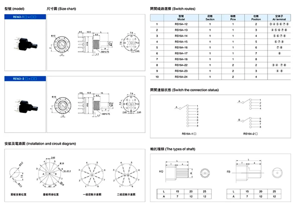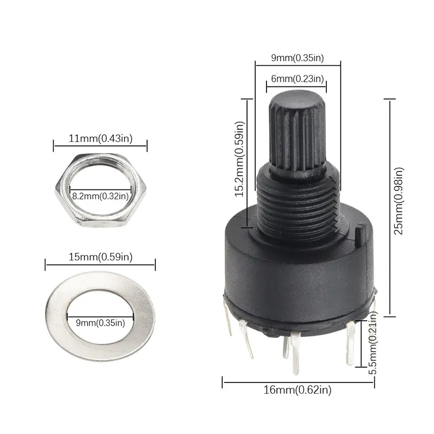 1pcs SR16 16 มม.สวิทช์หมุน 1 เสา 3/4/5/6/8 ตําแหน่ง 2 เสา 3/4 ตําแหน่งจับความยาว 15MM SHAFT ดอกไม้แกนสวิทช์