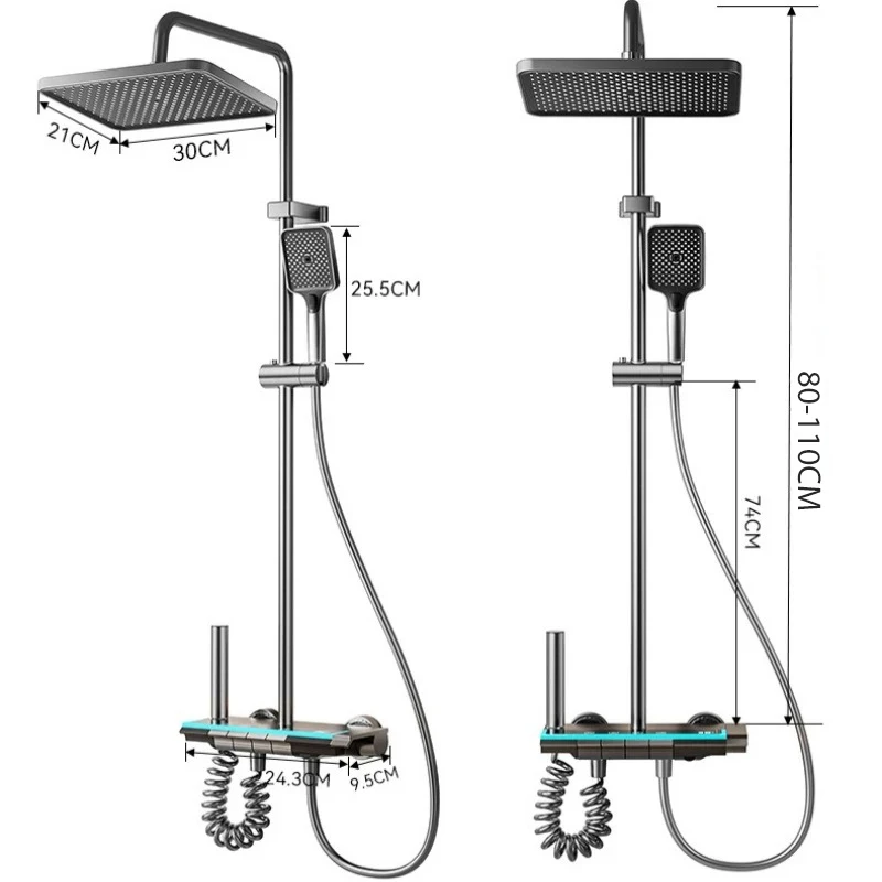 High-end 4 ฟังก์ชั่นห้องน้ําก๊อกน้ําชุดจอแสดงผลอุณหภูมิแบบดิจิตอลระบบฝักบัวร้อนเย็น Mixer ความดันก๊อก