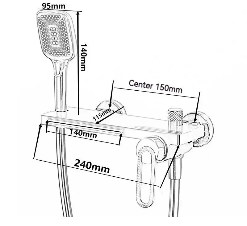 อ่างอาบน้ําฝักบัวก๊อกน้ําเดี่ยว Spout Mixer Tap Hand Shower Wall Mount แพลตฟอร์ม Bath Mixer ก๊อกน้ําติดผนัง