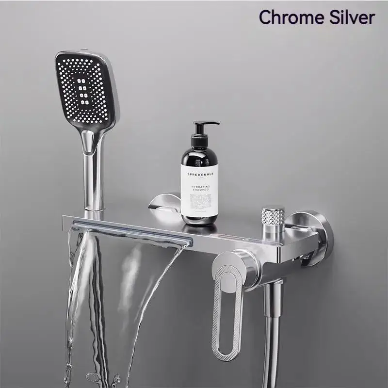 อ่างอาบน้ําฝักบัวก๊อกน้ําเดี่ยวจับ Spout Mixer แตะ Hand Shower Wall Mount แพลตฟอร์ม Bath Mixer ก๊อกน้ําร้อนและเย็น