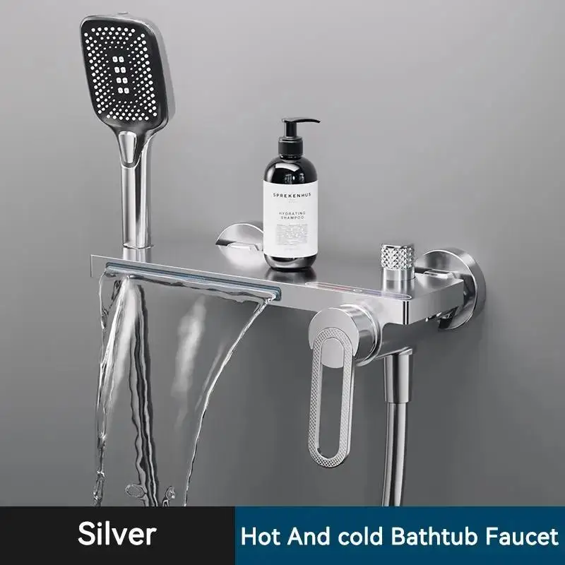 อ่างอาบน้ําฝักบัวก๊อกน้ําเดี่ยวจับ Spout Mixer แตะ Hand Shower Wall Mount แพลตฟอร์ม Bath Mixer ก๊อกน้ําร้อนและเย็น
