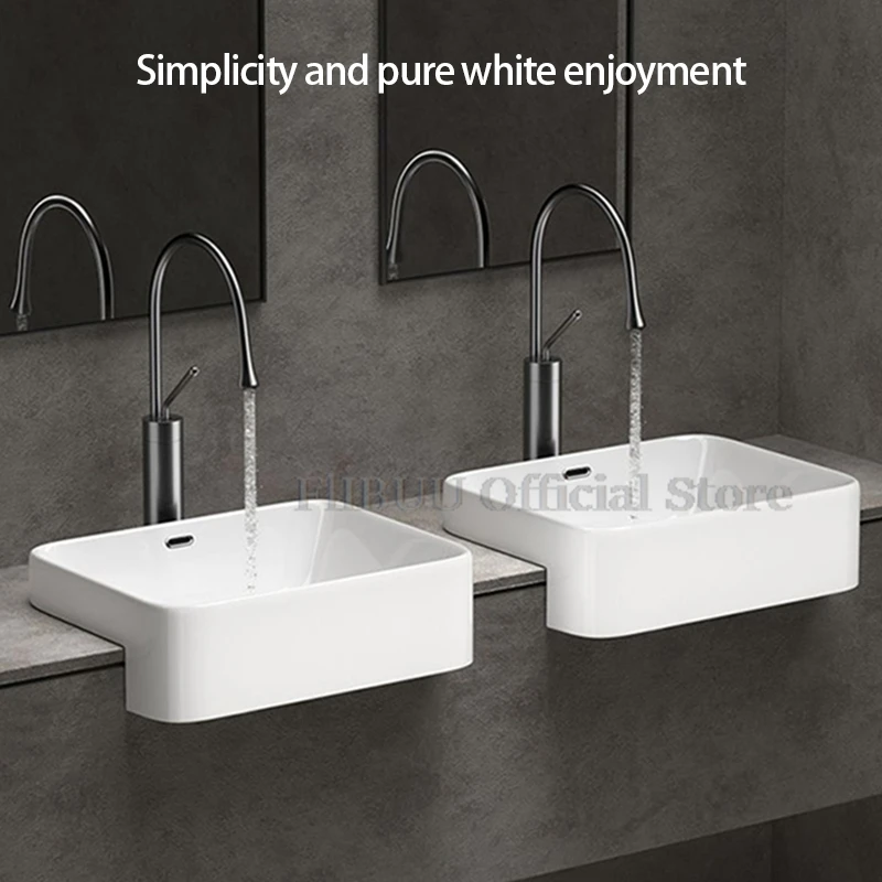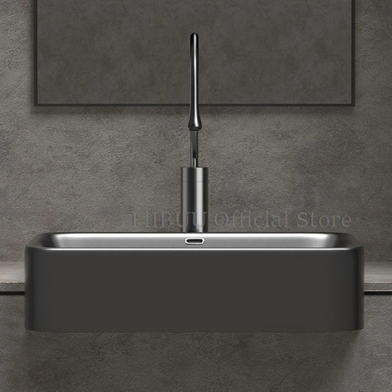 อ่างล้างมือเซรามิกแบบกึ่งฝังสำหรับใช้ในห้องน้ำอ่างล้างหน้าแบบเดี่ยวอ่างล้างหน้าแบบเดี่ยวอ่างล้างหน้าแบบหินสีเทา