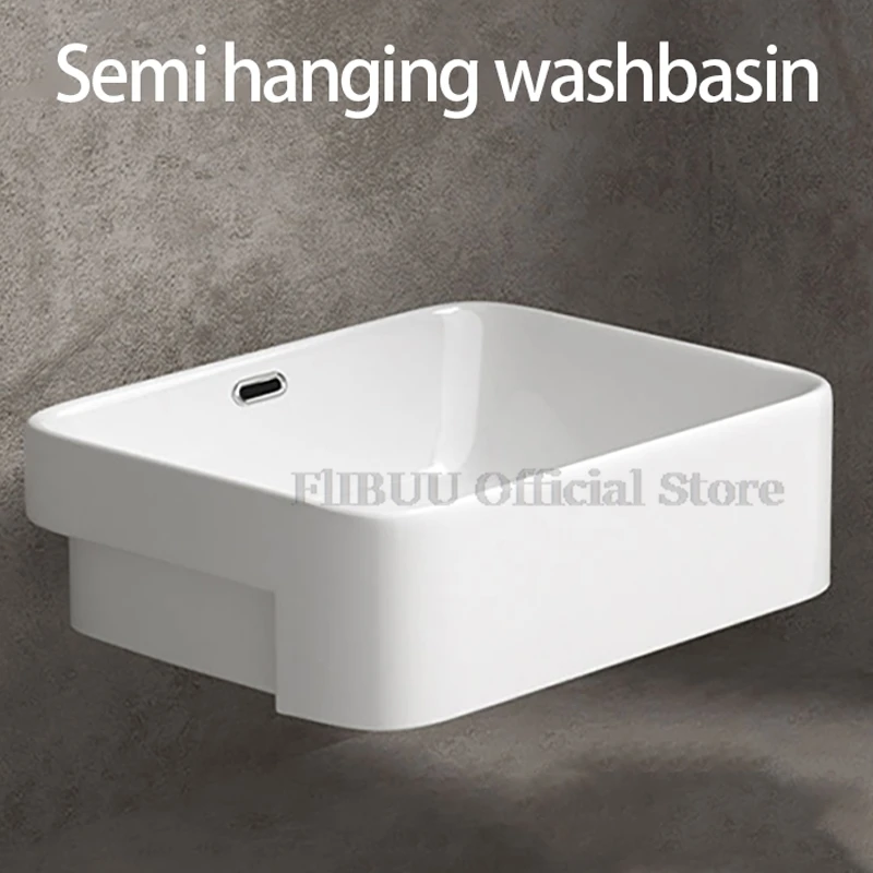 อ่างล้างหน้าเซรามิกติดผนังสำหรับห้องน้ำ อุปกรณ์ห้องน้ำแบบเรียบง่าย เหมาะสำหรับอพาร์ทเมนต์ ดีไซน์แคบ ติดผนัง