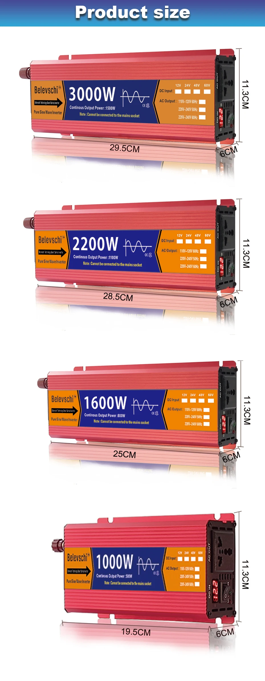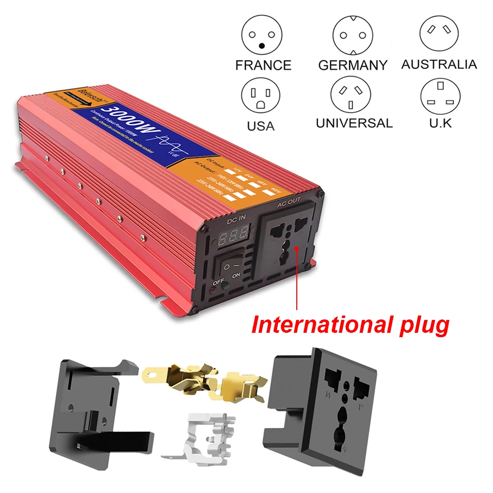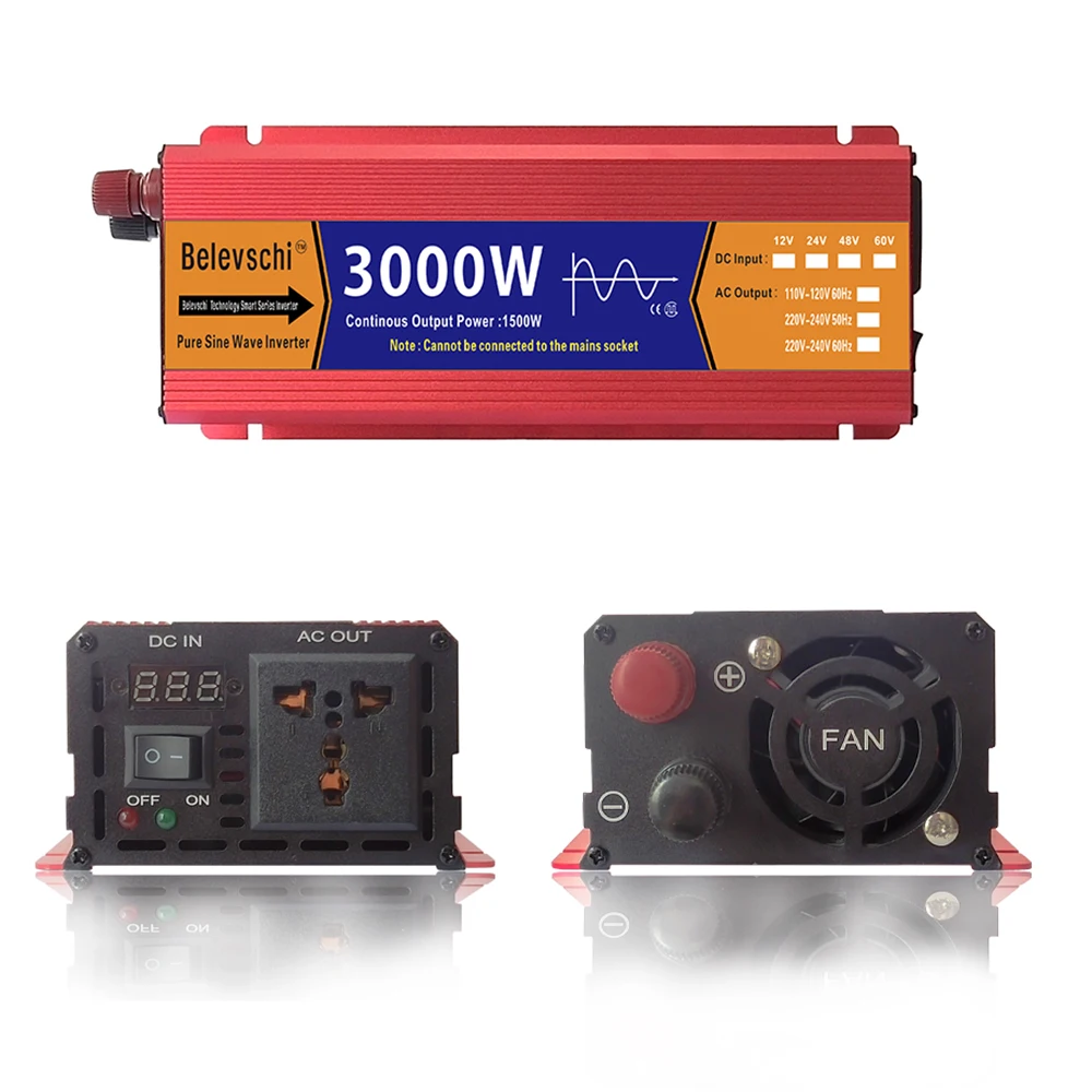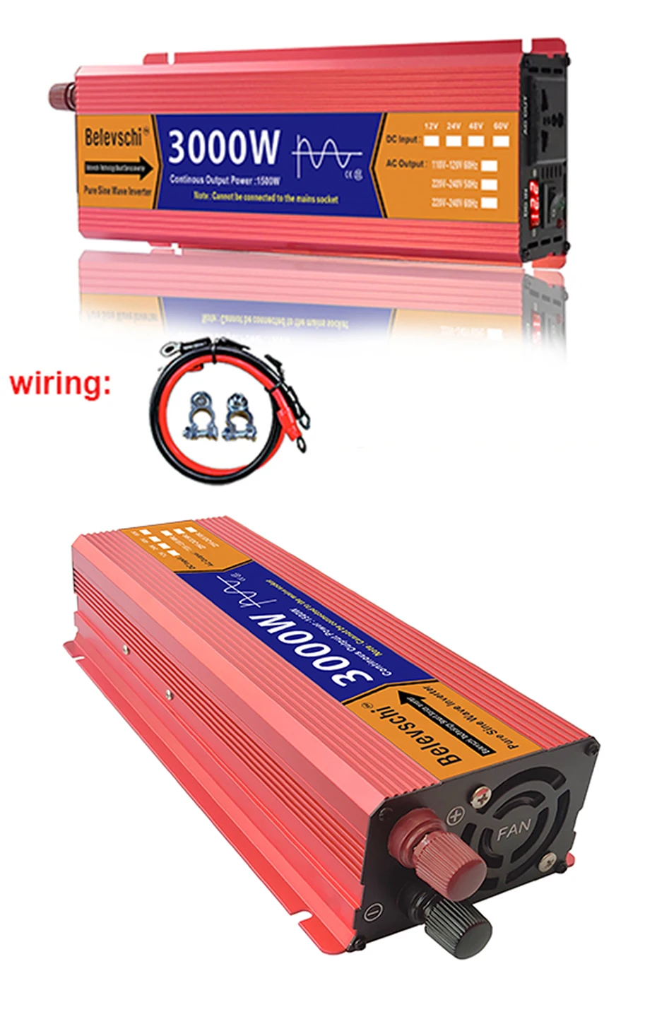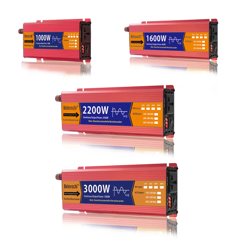 Pure Sine Wave อินเวอร์เตอร์12V/24V To AC 110V 220V 1000W/1600W/2200W/3000W หม้อแปลงไฟฟ้าแรงดันไฟฟ้า Converter พลังงานแสงอาทิตย์ LED อินเวอร์เตอร์
