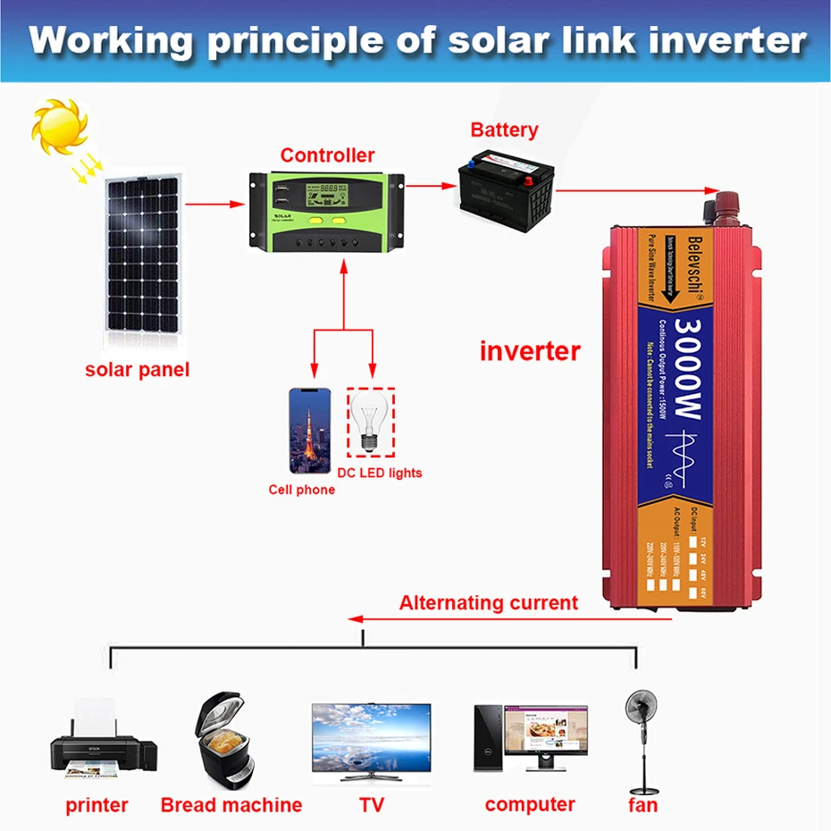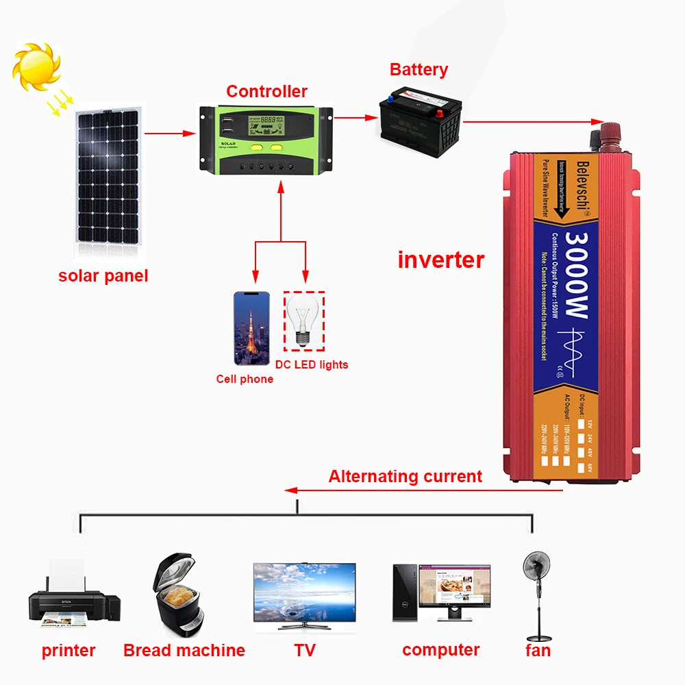 Solar inversor 10000W 12000W 24v 110v 220v Onda Pura Power Pure Sine Wave อินเวอร์เตอร์ 12v Inversores Solares แรงดันไฟฟ้ารถ Converter