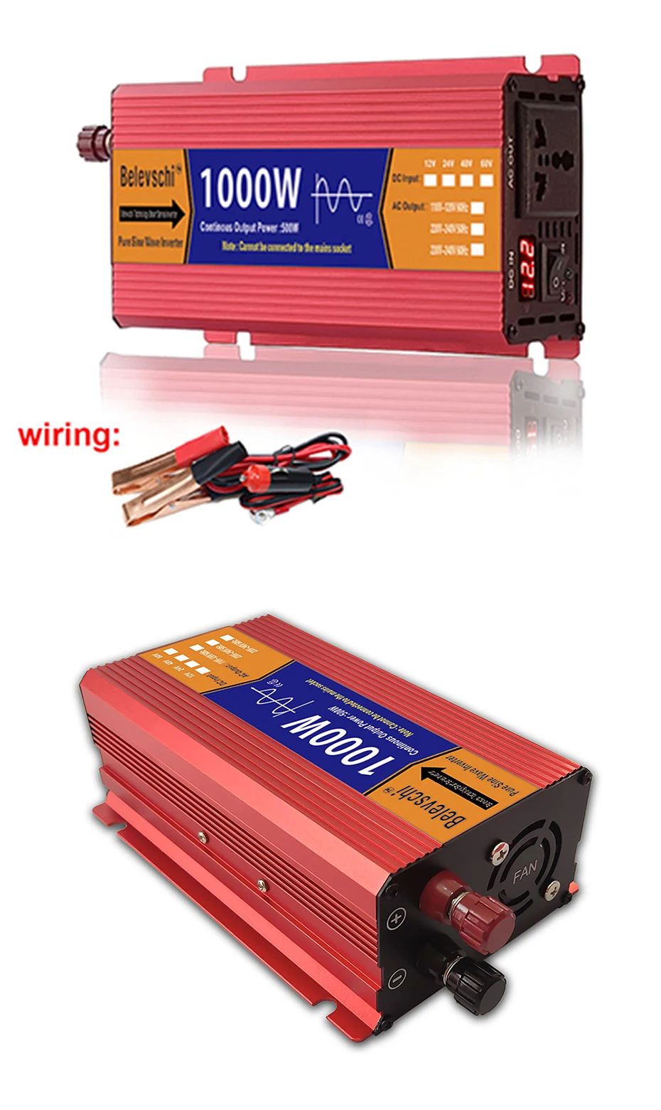 1000W Pure Sine Waveอินเวอร์เตอร์12V/24V /48V DC To AC 110V/220Vแบบพกพาแรงดันไฟฟ้าConverterรถอินเวอร์เตอร์พลังงานแสงอาทิตย์