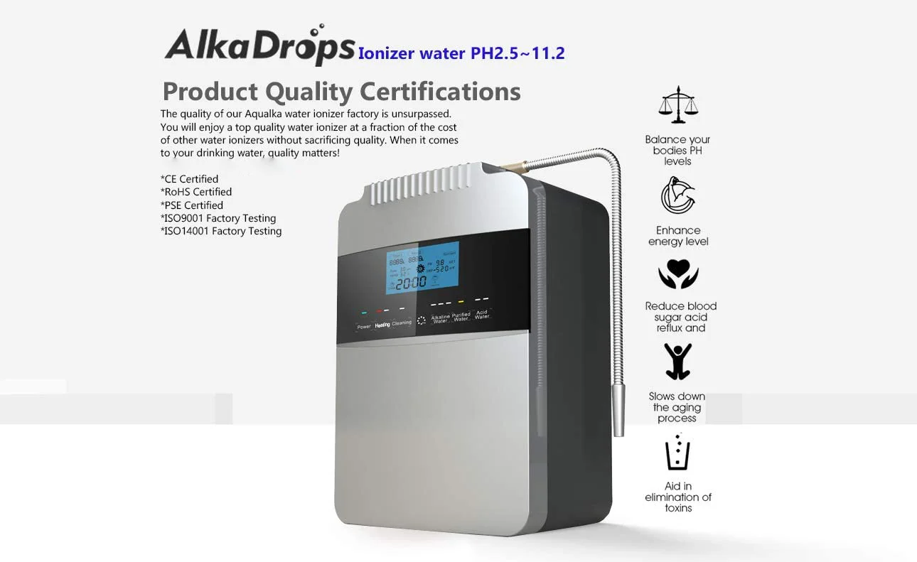 เครื่องผลิตน้ำอัลคาไลน์ไอออไนซ์ใหม่เอี่ยมเป็นอุปกรณ์ที่ใช้ตรวจสอบความบริสุทธิ์ของน้ำและทำให้น้ำไร้สารปนเปื้อนจากน้ำ ค่า pH ของร่างกายยังคงคงที่เนื่องจากน้ำอัลคาไลน์จะลดความเข้มข้นของกรดที่มีอยู่ในร่างกาย ในเวลาเดียวกันเนื่องจากศักยภาพเชิงลบของน้ำมีค่าสูงมากจึงมีฤทธิ์ต้านอนุมูลอิสระ วิธีนี้ร่างกายยังคงพอดีและระบบภูมิคุ้มกันเติบโตขึ้น หลักการพื้นฐานของไอออไนเซอร์น้ำคือการอิเล็กโทรไลซิสของน้ำเพื่อแยกไฮโดรเจนและไอออนไฮดรอกไซด์ อุปกรณ์นี้สามารถสร้างได้ที่บ้านโดยปฏิบัติตามกฎพื้นฐานของการอิเล็กโทรไลซิส การบริโภคน้ำจากอุปกรณ์นี้เป็นประโยชน์อย่างมาก มันสามารถชะลอกระบวนการชรา อย่างไรก็ตามมีข้อเสียเช่นการลดลงของกรดในร่างกายซึ่งทำให้การย่อยอาหาร ดังนั้นการใช้อุปกรณ์อย่างชาญฉลาดสามารถให้ผลลัพธ์ที่เป็นผล