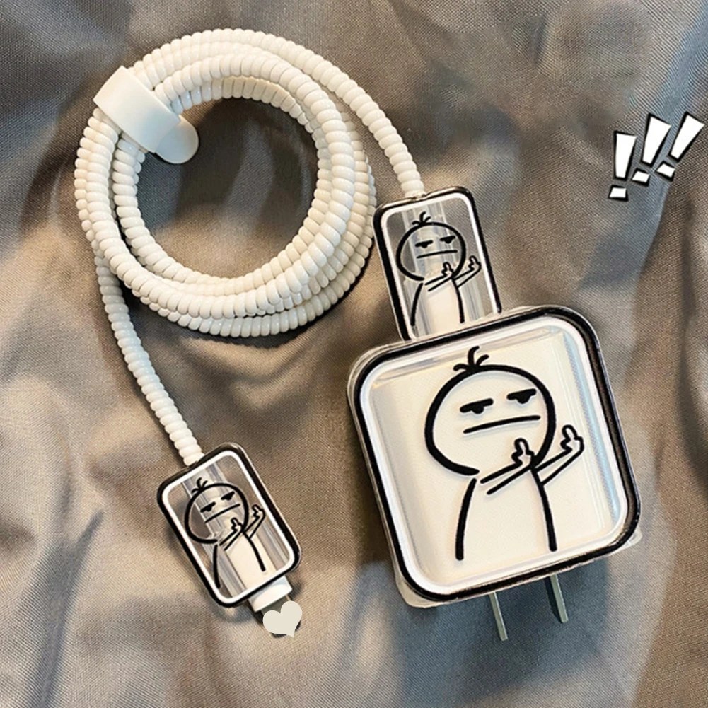 Creative Lineน่ารักสําหรับiPhone 15 14 13 Pro Max 18/20Wชาร์จProtectorข้อมูลลวดWinder Simple Line Art Cover