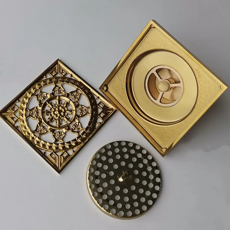 Anaglyph ท่อระบายน้ําชั้นทองเหลือง 10×10 ซม.ห้องน้ําห้องอาบน้ําฝักบัวท่อระบายน้ํากรองชั้นระเบียงระงับกลิ่นกายตะแกรงท่อระบายน้ําเสีย