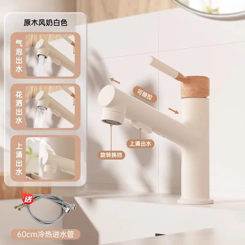 ก๊อกน้ำอ่างล้างหน้าแบบดึงออกได้ สีขาวทองแดงขัดเงา สำหรับใช้ในบ้าน น้ำร้อนน้ำเย็น รุ่น G3/8 G1/2