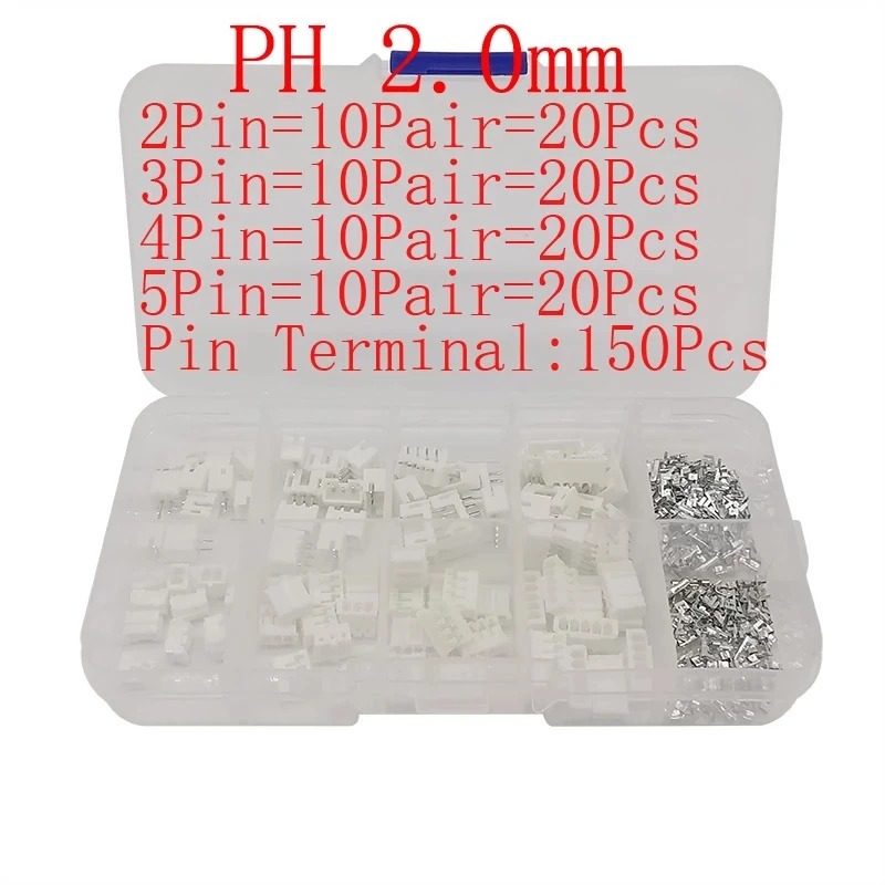 230 ชิ้น/เซ็ต XH2.54 2.54 มม./PH2.0 2.0mm Pitch Terminals ชุดตัวเชื่อมต่อ 2Pin 3Pin 4Pin 5Pin PH ชุด JST Connector สายไฟอะแดปเตอร์