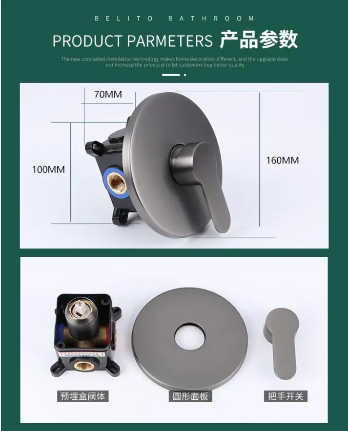 Shower Control Valve Bahtroom Black Chrome One Function Brass In Wall Faucet Mixer Concealed Control Valve For Shower Head