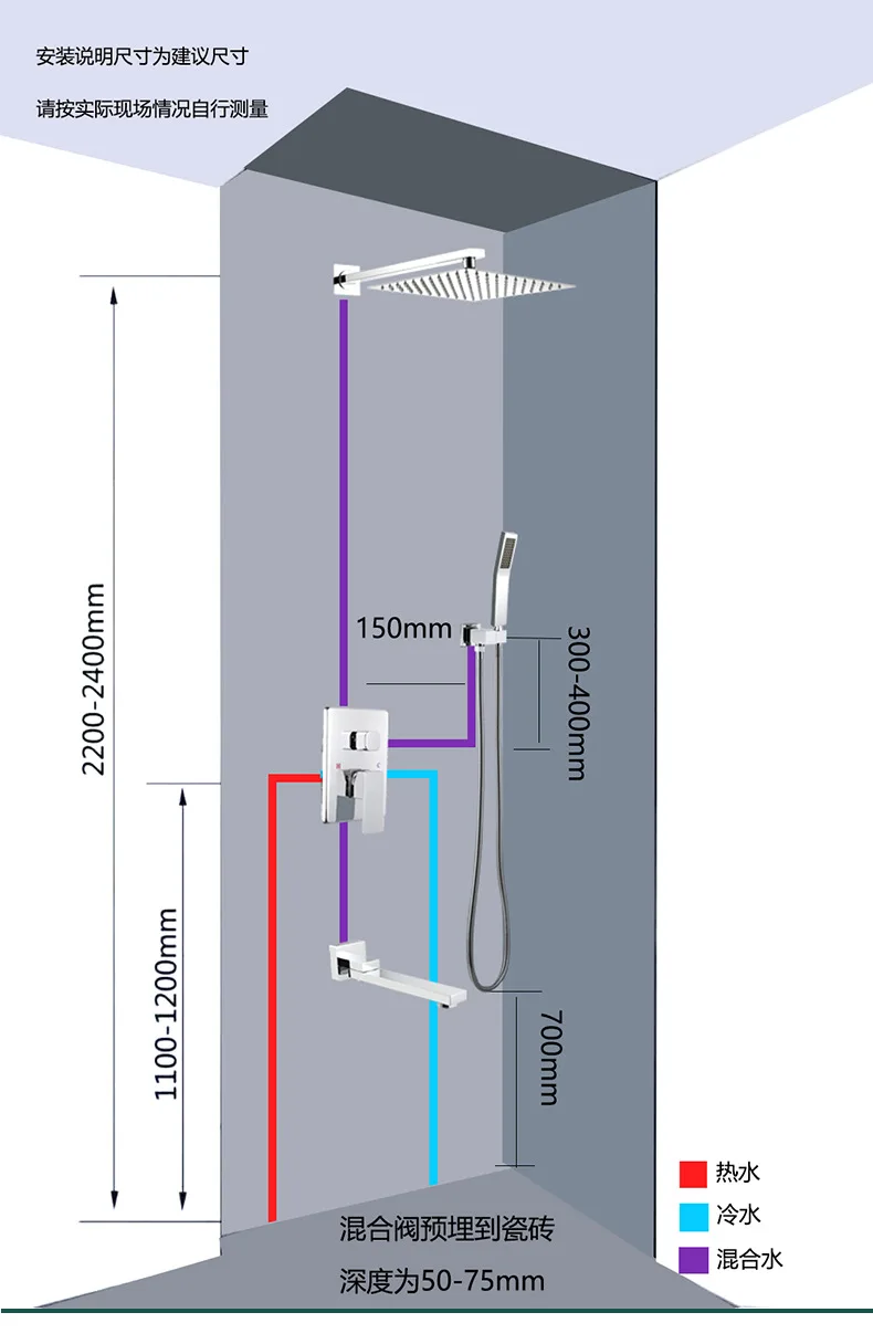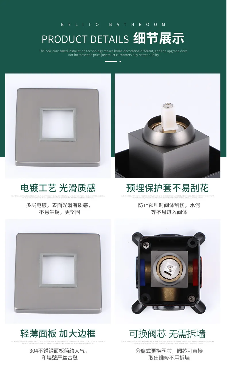 ทองเหลืองก๊อกน้ำในห้องน้ำซ่อนอัจฉริยะดิจิตอลจอแสดงผลเดี่ยว2 Cold & Hot Dual-Control ก๊อกน้ำอ่างล้างหน้า