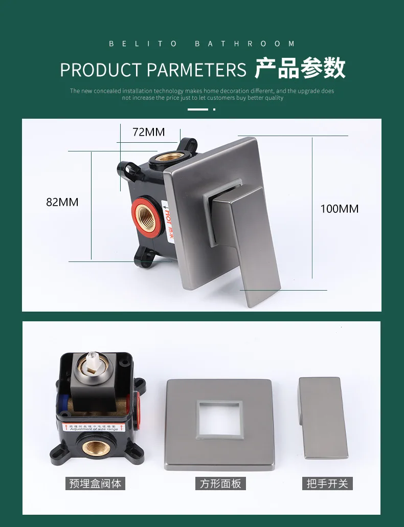 ฝักบัวอาบน้ำควบคุมวาล์วห้องน้ำสีดำ Chrome ฟังก์ชั่นทองเหลืองผนังก๊อกน้ำก๊อกน้ำปกปิดควบคุมวาล์วฝักบัว