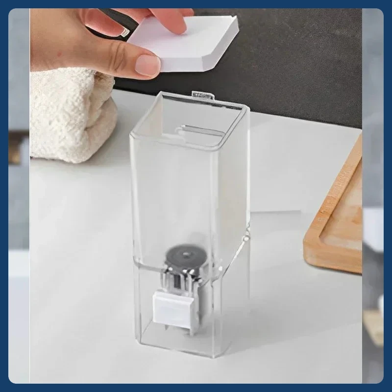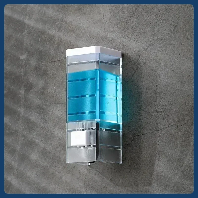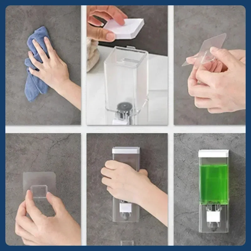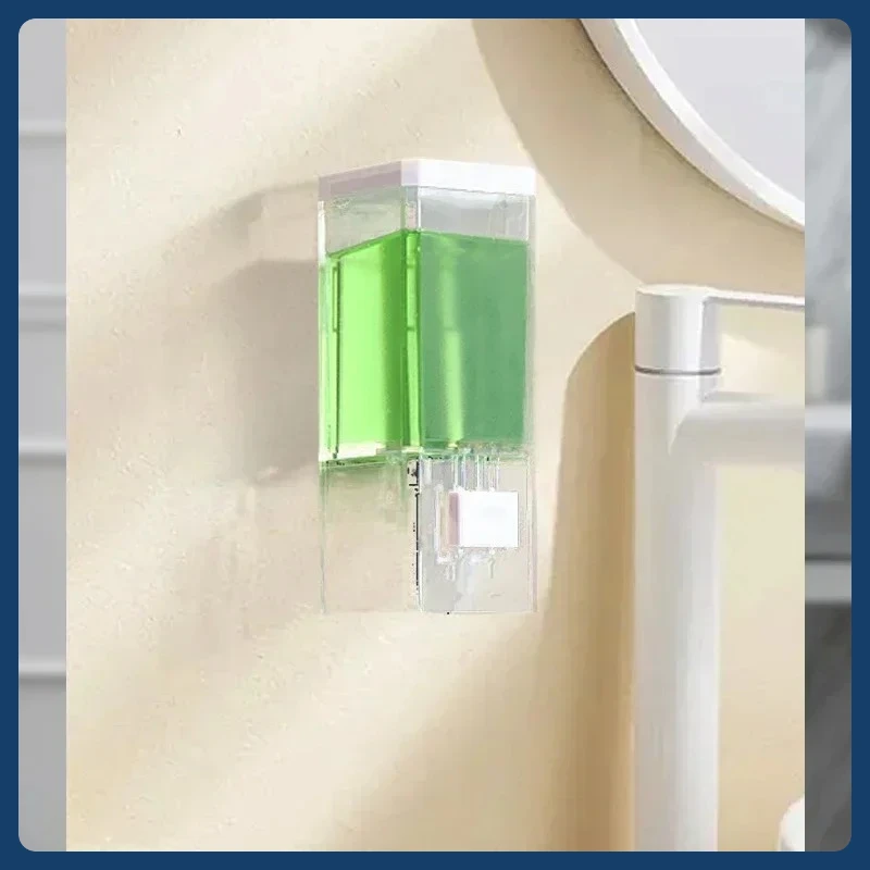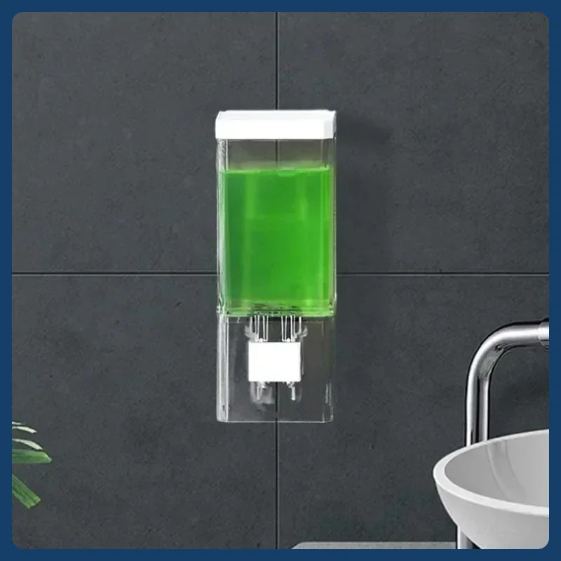 เครื่องจ่ายสบู่แบบกดมือ ไม่ต้องเจาะผนัง ติดผนังแบบไม่ทิ้งรอย ขวดใส่ยาฆ่าเชื้อแบบใส สำหรับห้องน้ำ