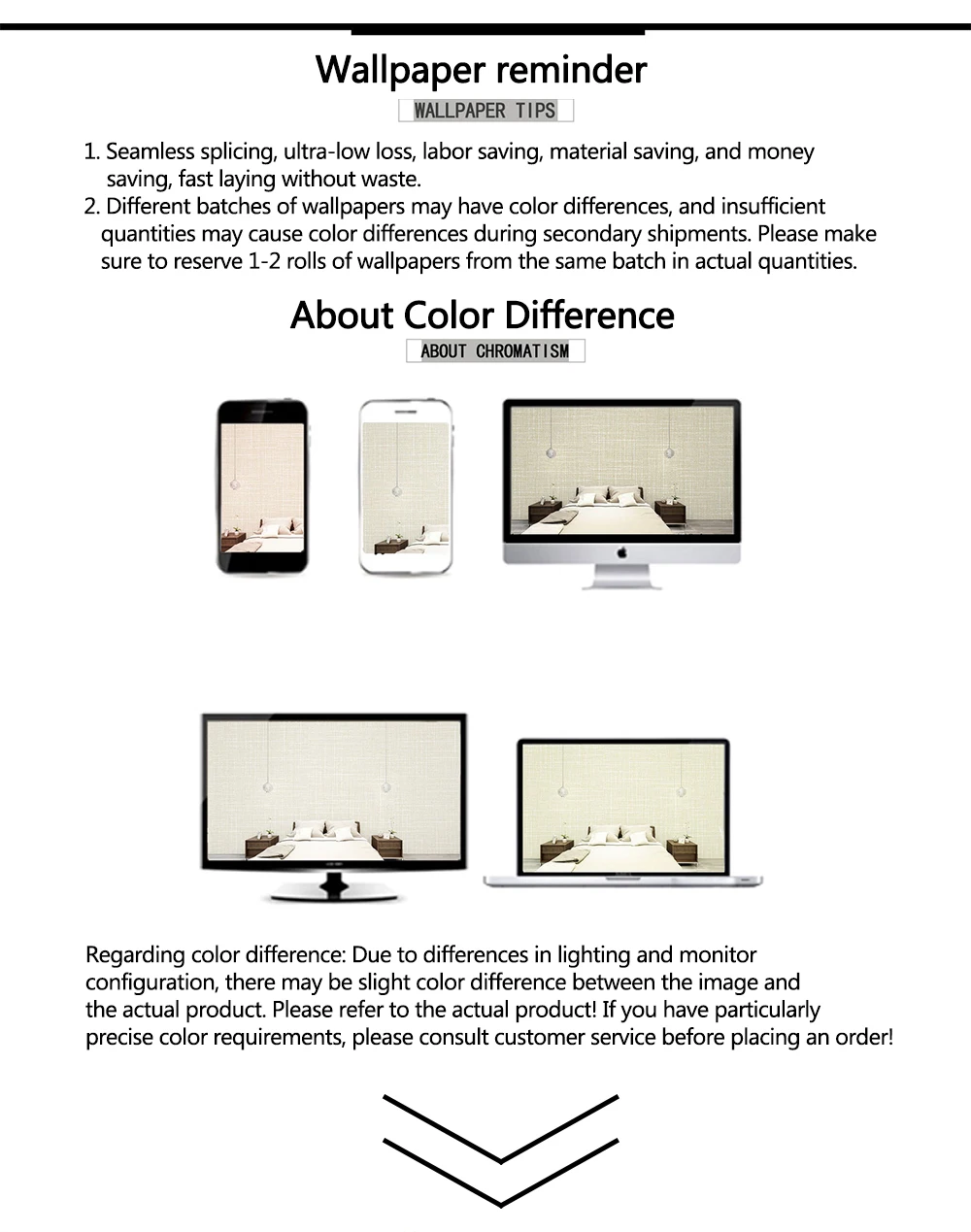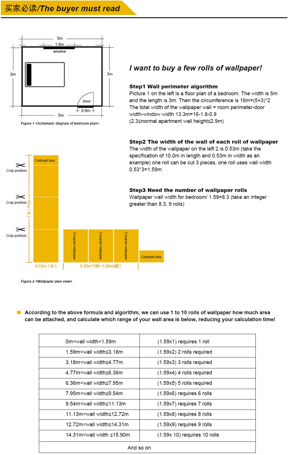 1. Wallpaper is not self-adhesive, you need to buy your own glue to bond! In addition, after the production of wallpaper, plastic packaging is carried out, there are some ink smells that are not emitted, which may lead to a slight smell for customers who are very sensitive to the smell after unpacking. This is a normal situation. After unpacking and pasting, the smell will gradually disappear after ventilation. Our products are in line with the national standards for interior decoration materials, please rest assured that the use.