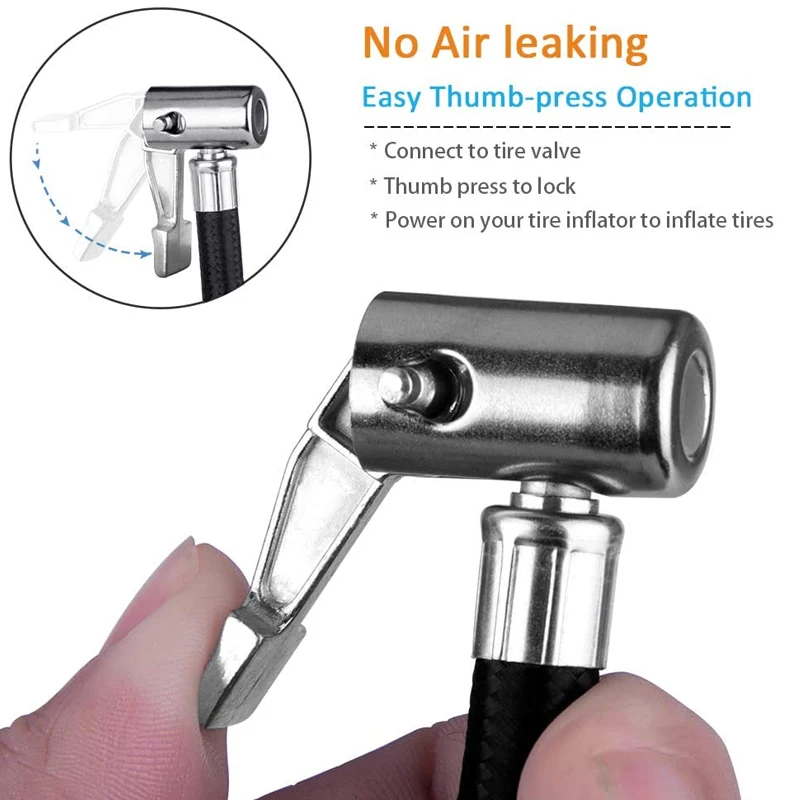 * หัวฉีดลมสำหรับก่อสร้างทำจากโลหะทุกชนิดอะแดปเตอร์เติมลมยางแบบพกพาสำหรับรถจักรยานรถมอเตอร์ไซค์รถ หัวจับอากาศแบบกดด้วยนิ้วโป้ง90องศาอัตราเงินเฟ้อแบบแฮนด์ฟรีง่ายและรวดเร็ว