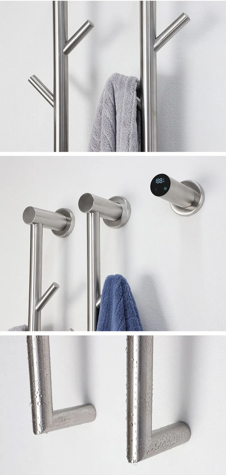 ราวแขวนผ้าเช็ดตัวไฟฟ้าในห้องน้ำ แบบติดผนัง สแตนเลส พร้อมระบบทำความร้อนในตัว ดีไซน์สวยงาม