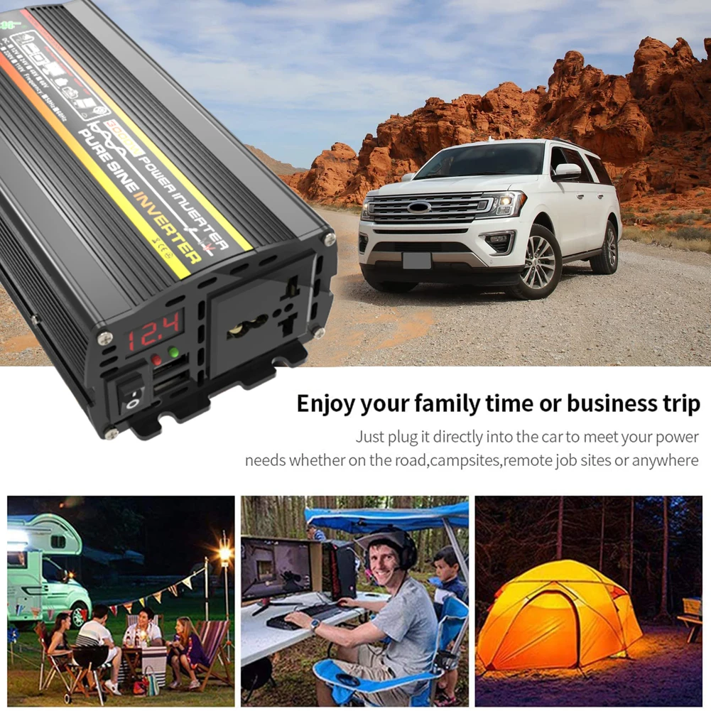 อินเวอร์เตอร์ 4000W Dual USB Modified Sine Wave 12V หม้อแปลงแรงดันไฟฟ้าพลังงานแสงอาทิตย์อะแดปเตอร์รถ Fast Charge Converter จอแสดงผล LCD