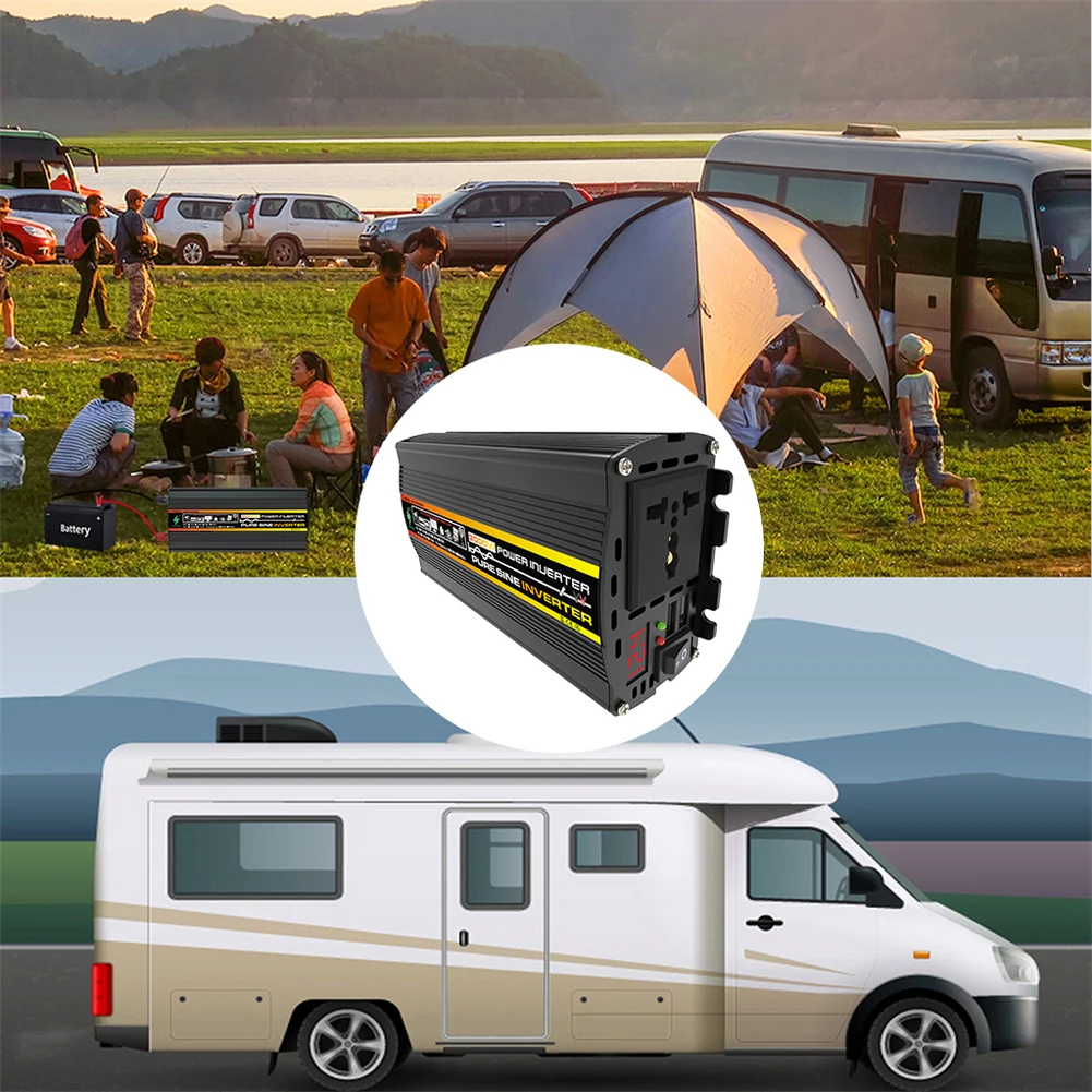 อินเวอร์เตอร์คลื่นไซน์บริสุทธิ์ 4000W 5000W 6000W แปลงไฟ DC 12V 24V เป็น AC 220V พร้อมเต้ารับแบบ EU คู่ อินเวอร์เตอร์ในรถยนต์ ตัวแปลงแรงดันไฟฟ้า