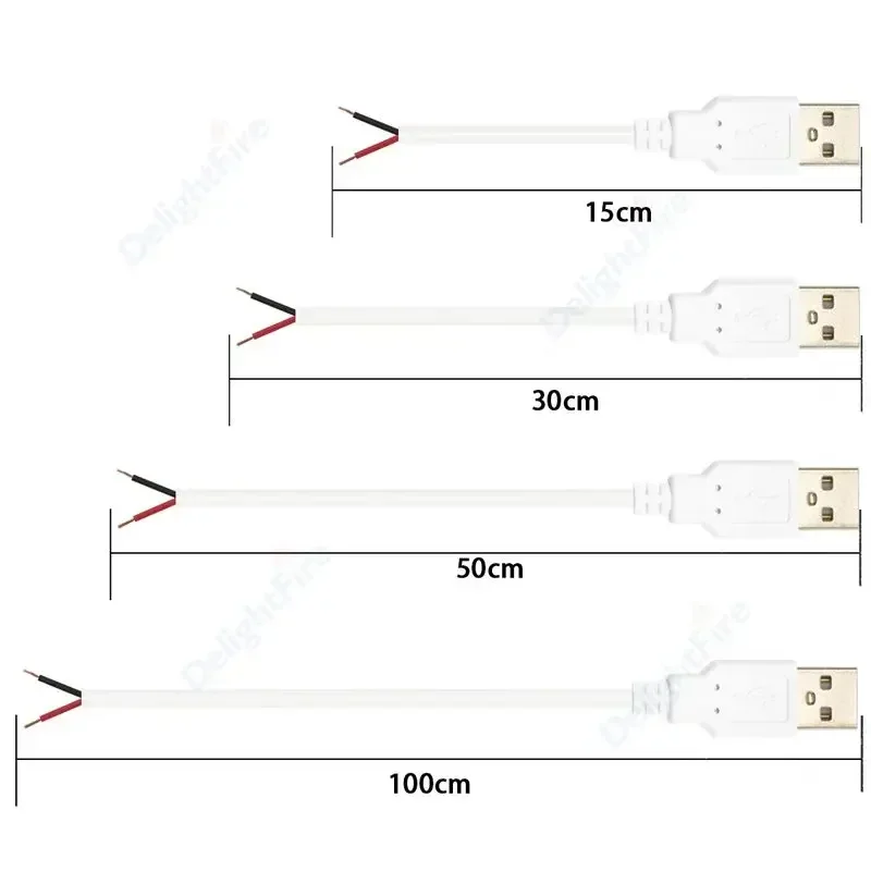 2 ขาลวดเปลือย USB 2.0 สายไฟ DIY Pigtail 5V 12V ปลั๊กสําหรับอุปกรณ์ USB ติดตั้งโครงการ DIY แถบ LED แฟน