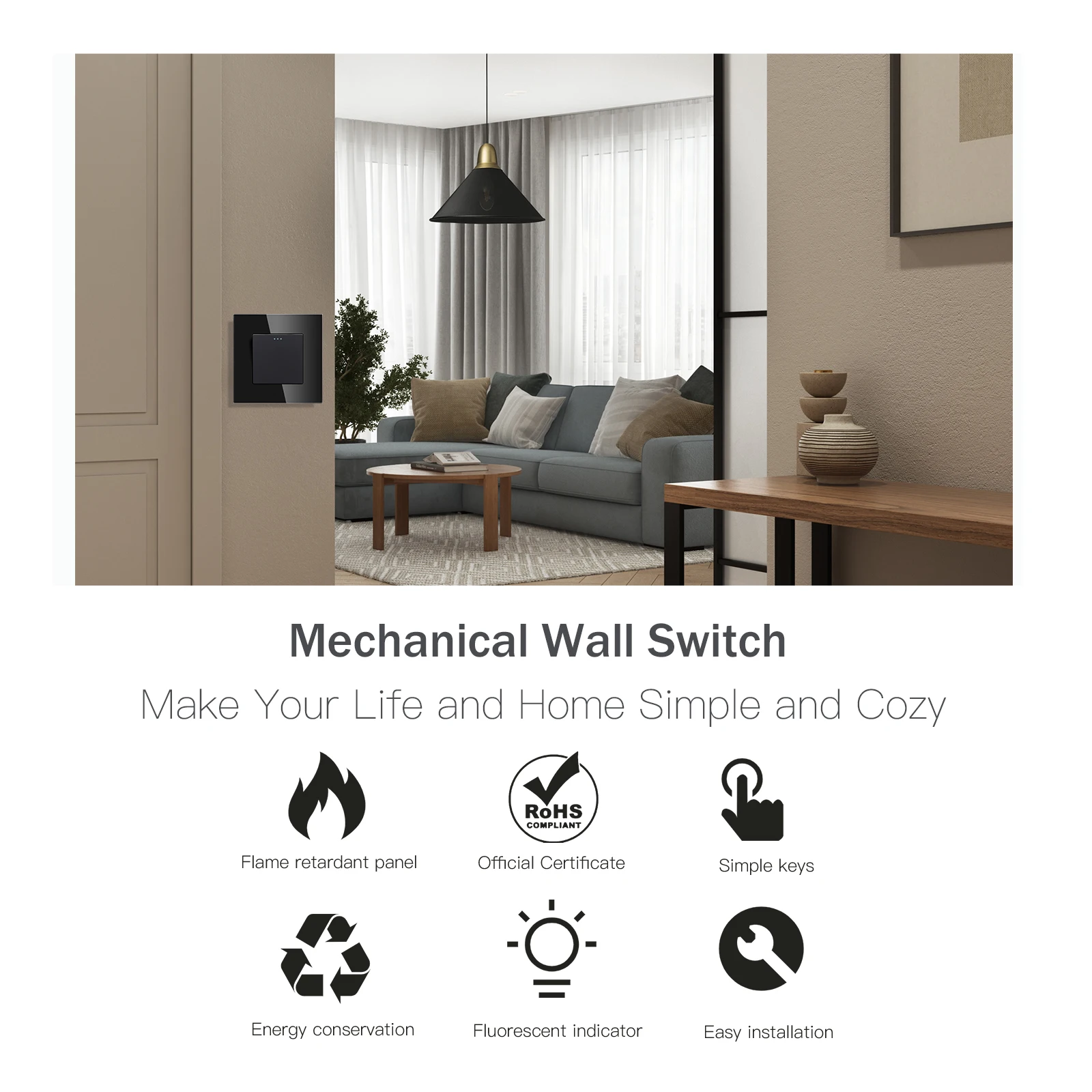 BSEED ผนังสวิทช์อัตโนมัติ Rebound 1/2GANG 1Way แก้ว Mechanical Light สวิทช์รีเซ็ตสวิทช์กลับตำแหน่งเริ่มต้น