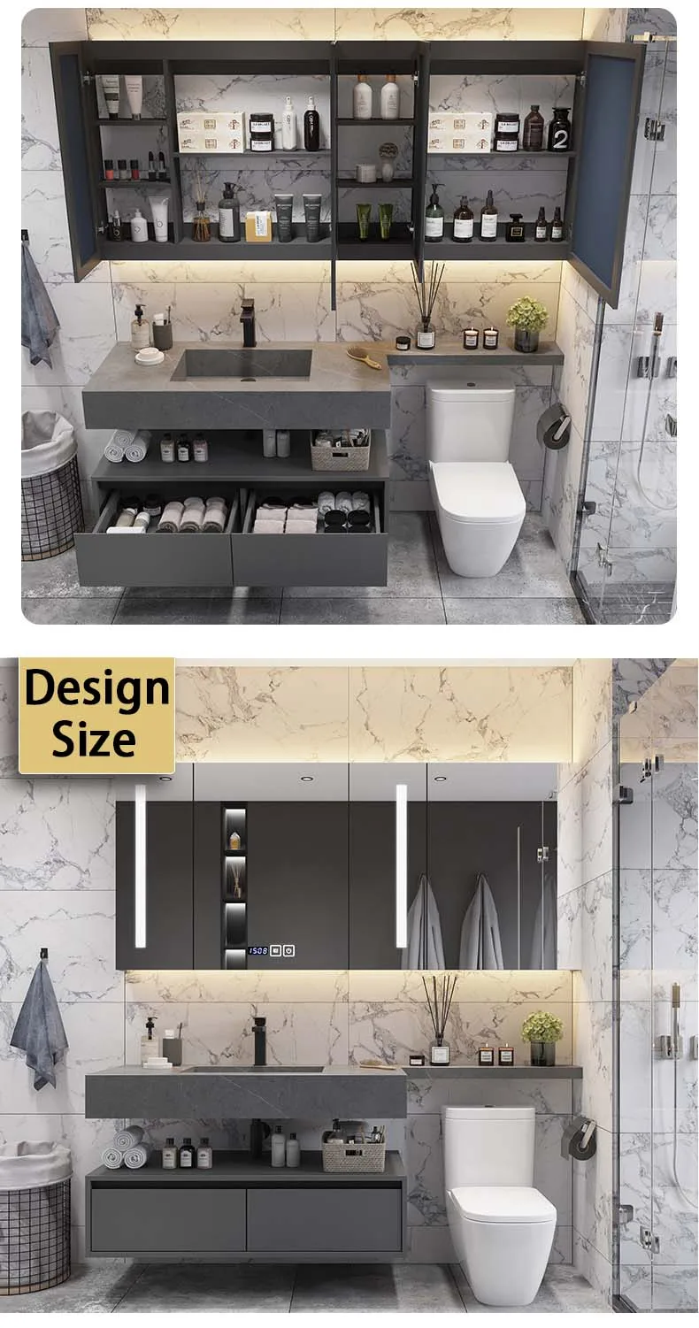 ตู้ห้องน้ำติดผนังหินอ่อนพร้อมกระจก LED รุ่นใหม่ ปี 2024 ตู้อัจฉริยะ สีขาวนม