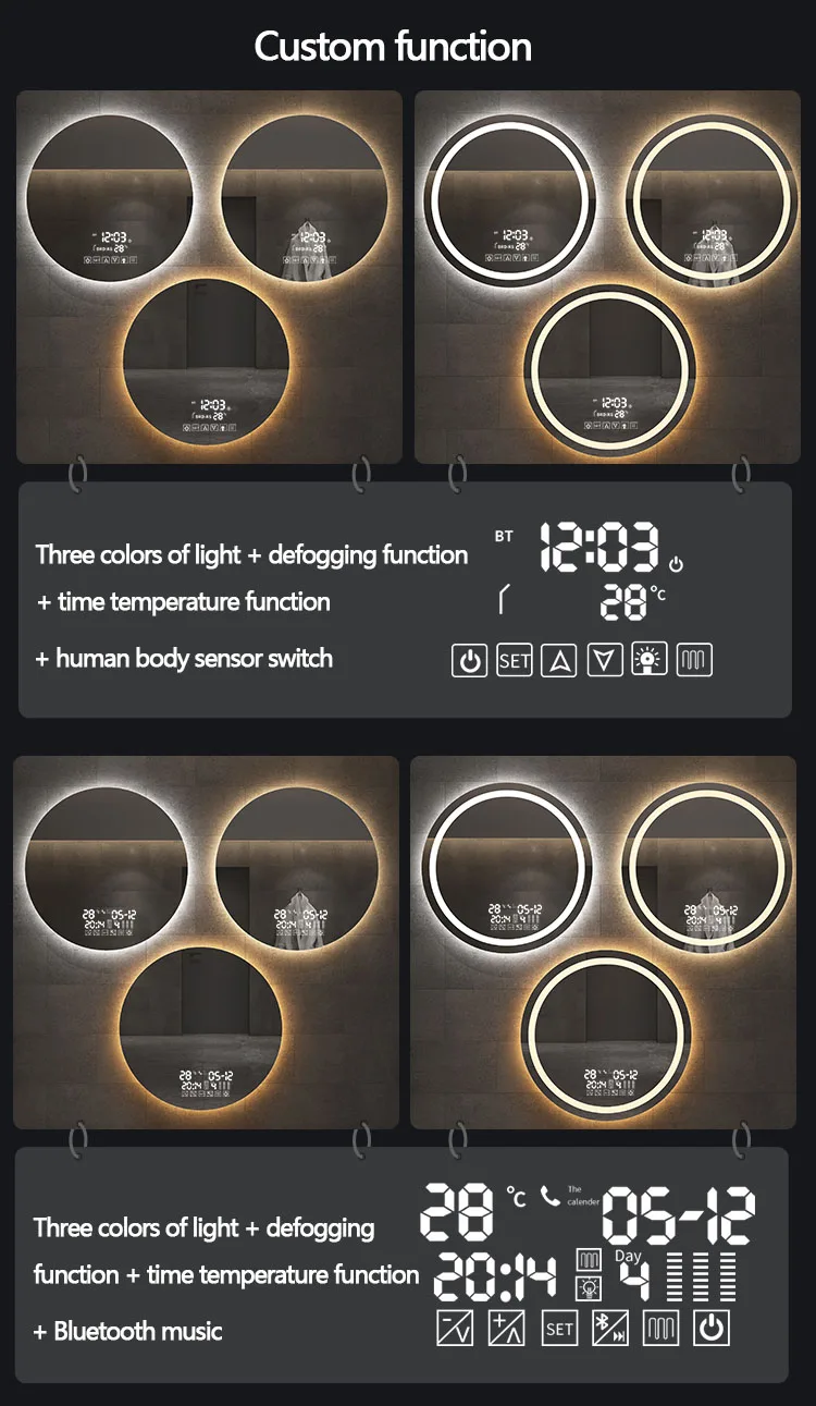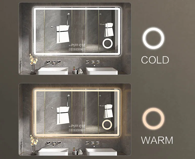 ตู้กระจกห้องน้ําอัจฉริยะรูปโค้ง, ตู้กระจกห้องน้ําติดผนังพร้อมไฟส่องสว่าง, ตู้กระจกห้องน้ําอัจฉริยะ