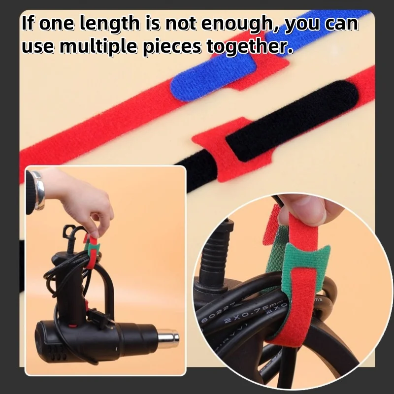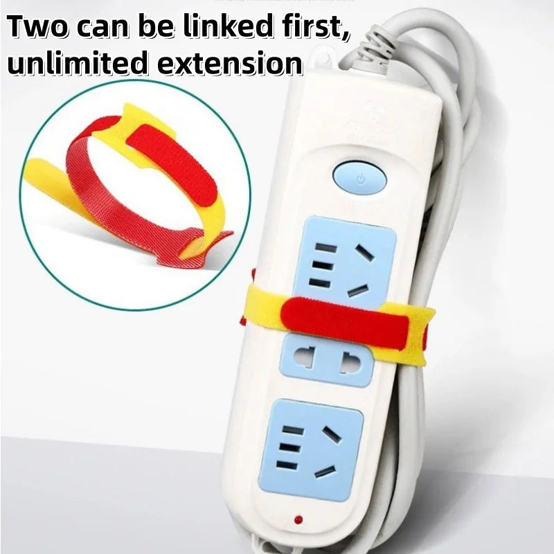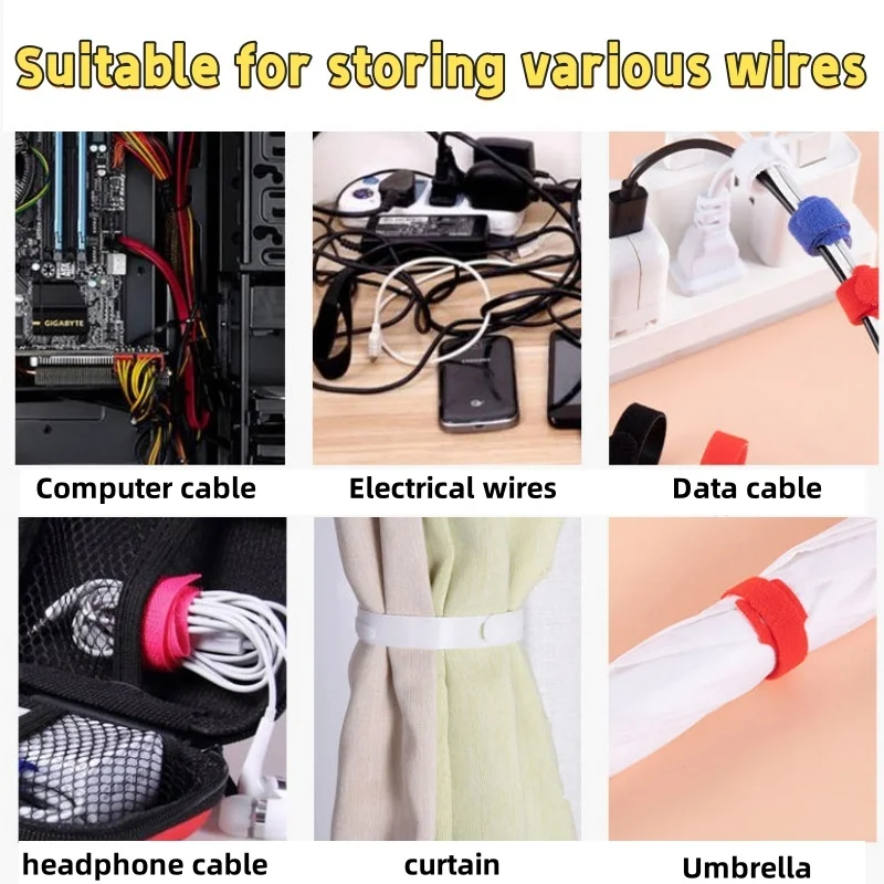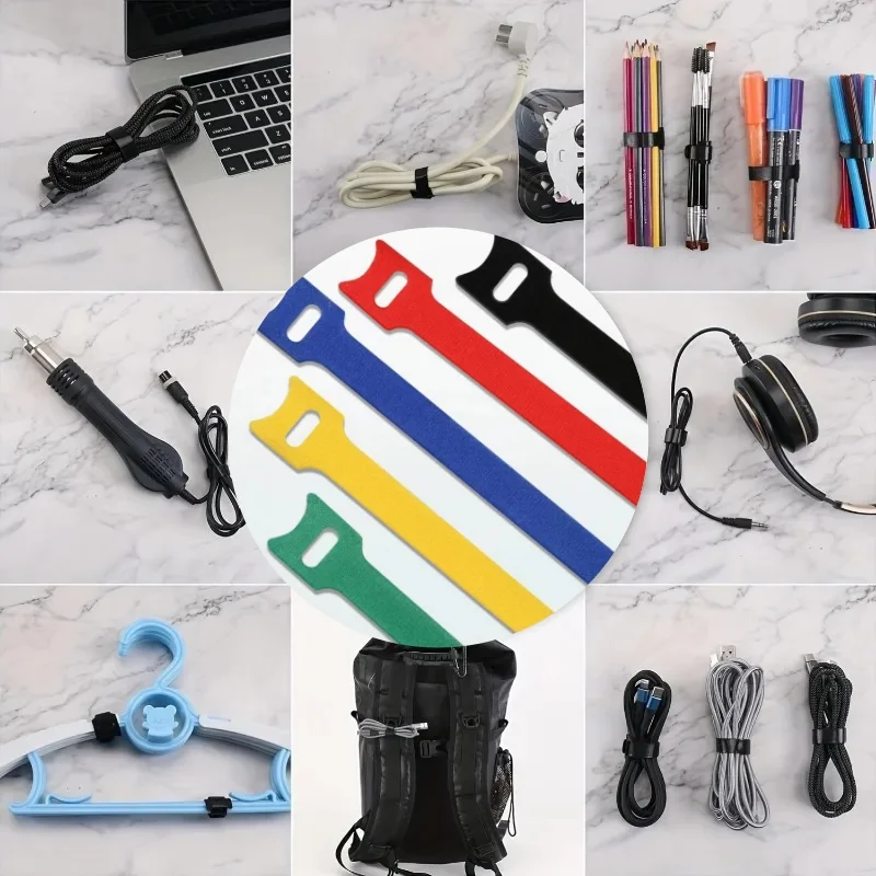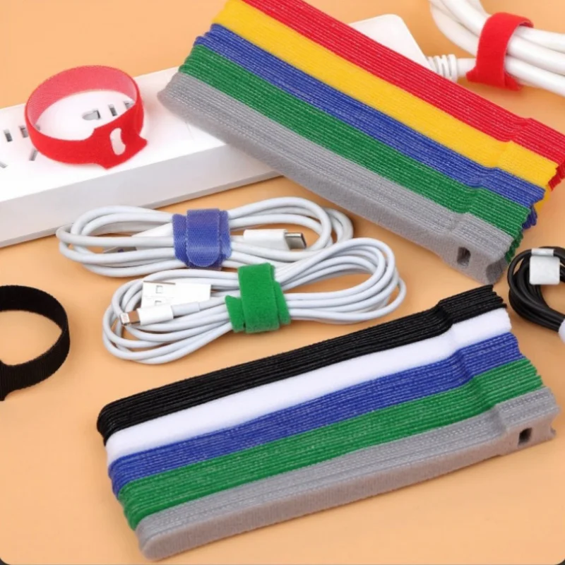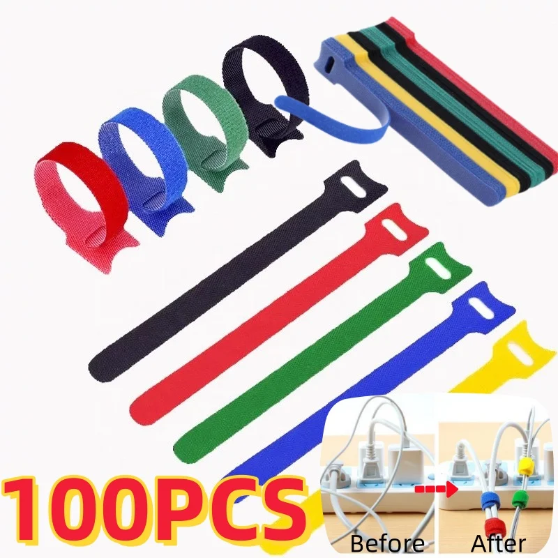 สายรัดเคเบิลแบบเวลโครสำหรับจัดระเบียบสายไฟในบ้าน หลายสี ใช้ซ้ำได้ ถอดออกได้ แบบห่วงและห่วง 100/10 ชิ้น