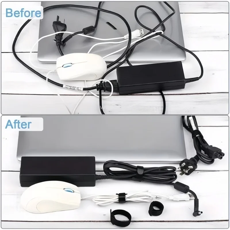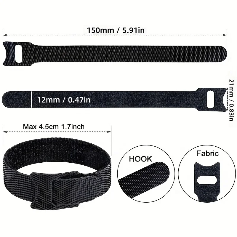 สายรัดจัดระเบียบสายเคเบิลแบบถอดได้ สำหรับเมาส์ หูฟัง และการจัดการสายไฟ สายรัดไนลอนแบบใช้ซ้ำได้ พร้อมห่วงล็อกและเทปรัด
