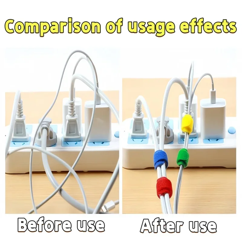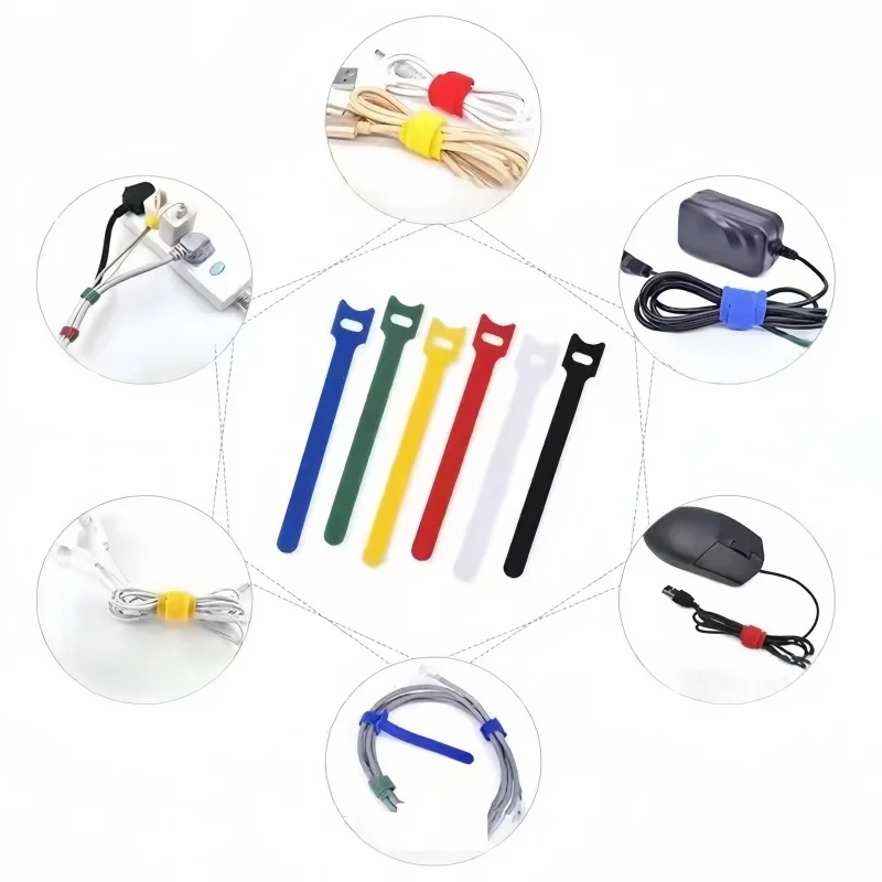 สายรัดเคเบิลแบบเวลโครสำหรับจัดระเบียบสายไฟในบ้าน หลายสี ใช้ซ้ำได้ ถอดออกได้ แบบห่วงและห่วง 100/10 ชิ้น