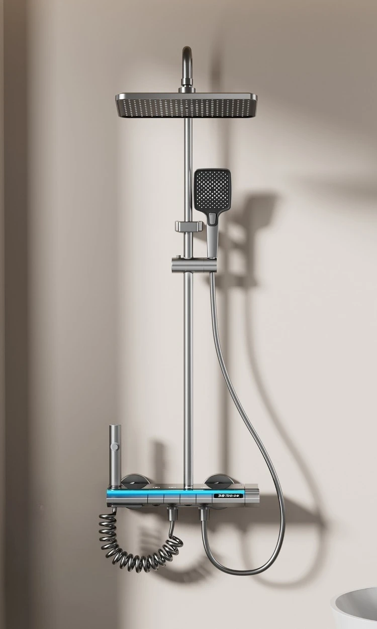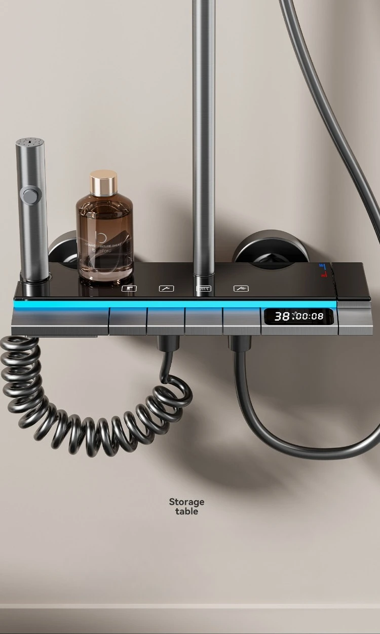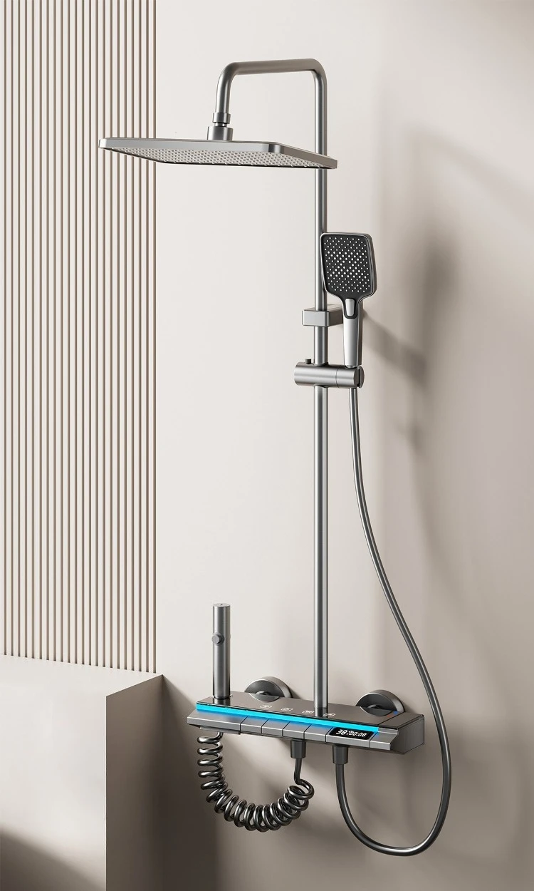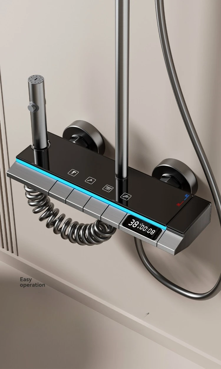 ชุดฝักบัวดิจิตอลอัจฉริยะ พร้อมหน้าจอแสดงอุณหภูมิ ระบบฝักบัวแบบเรนชาวเวอร์ ช่องจ่ายน้ำสี่ทาง ชุดก๊อกน้ำฝักบัวสำหรับห้องน้ำ