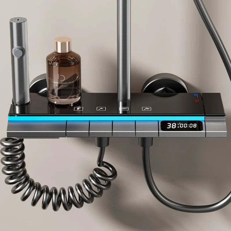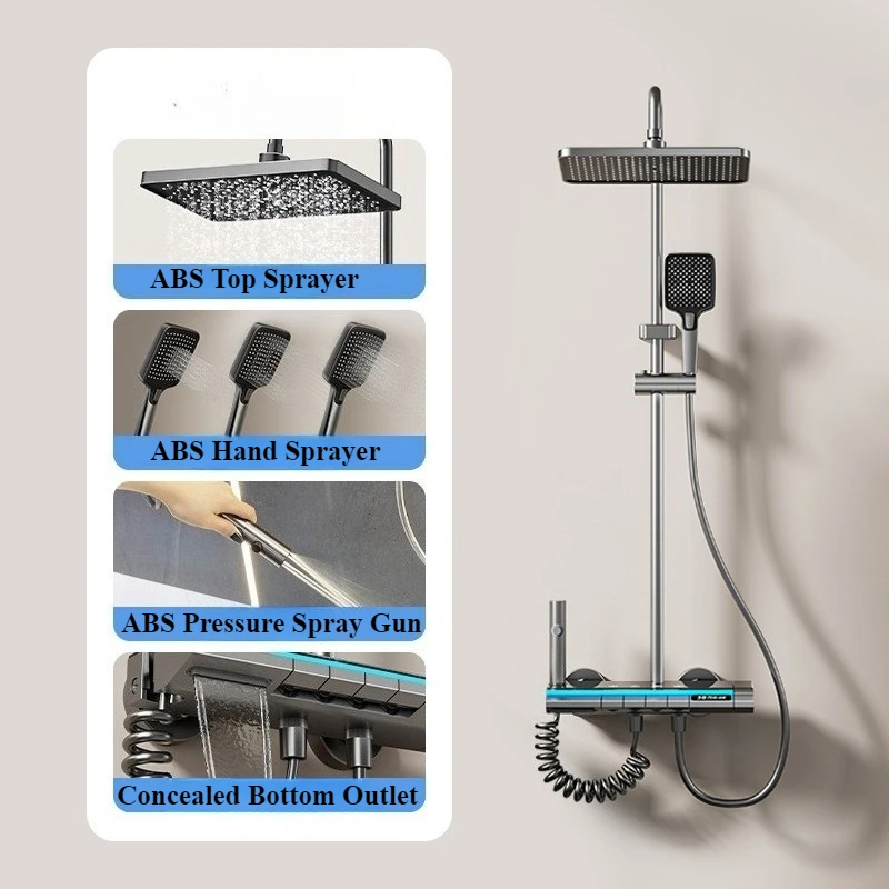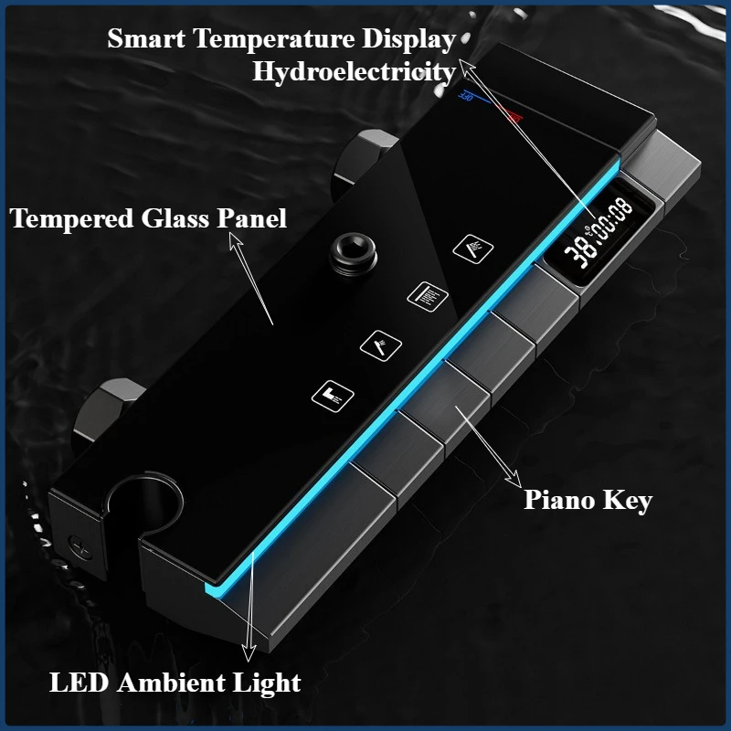 ชุดฝักบัวดิจิตอลอัจฉริยะ พร้อมหน้าจอแสดงอุณหภูมิ ระบบฝักบัวแบบเรนชาวเวอร์ ช่องจ่ายน้ำสี่ทาง ชุดก๊อกน้ำฝักบัวสำหรับห้องน้ำ