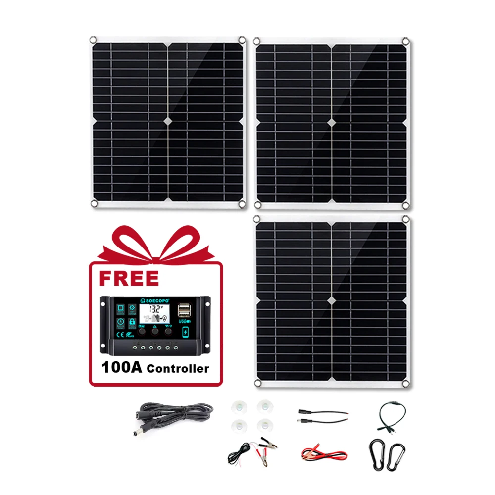 ชุดแผงโซลาร์เซลล์พกพา SOECOPO 900W – แผงเซลล์แสงอาทิตย์ 3 แผง, แถมฟรีคอนโทรลเลอร์ 100A, พอร์ต USB คู่ 5V อุปกรณ์จ่ายไฟสำหรับตั้งแคมป์